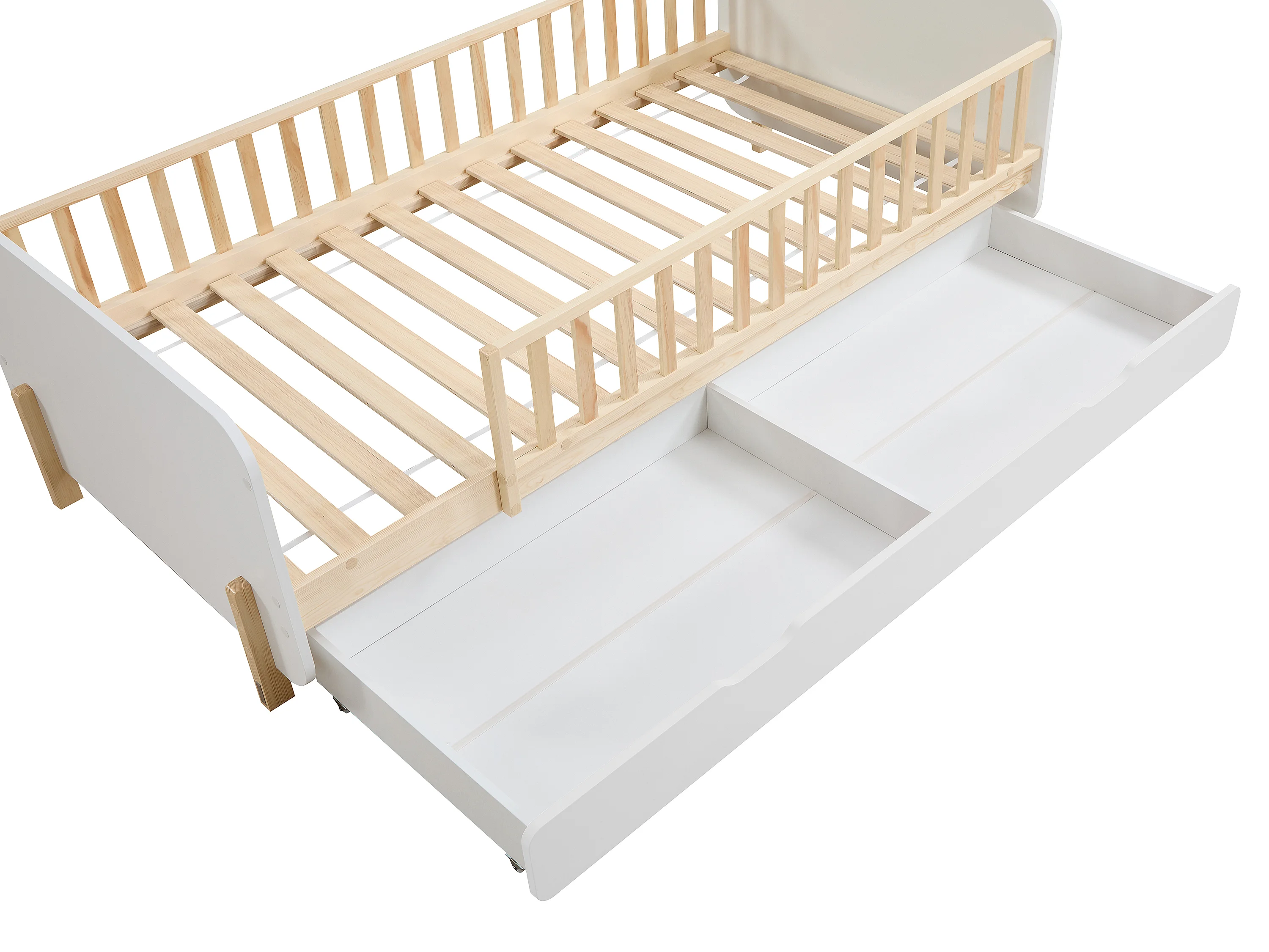 Lit 90 x 190 cm avec tiroir - Pin et MDF - Coloris : Naturel et blanc - LADEMI