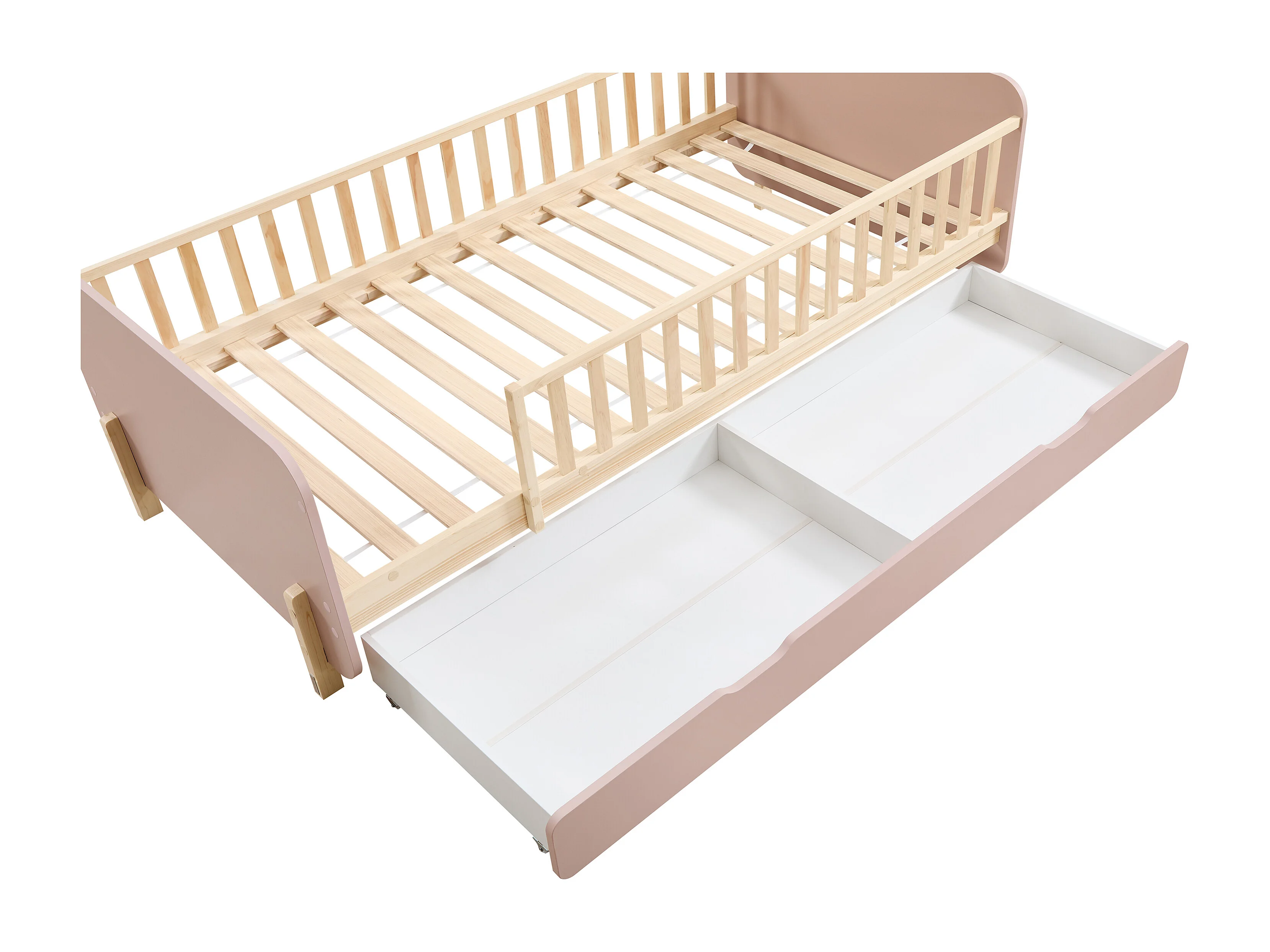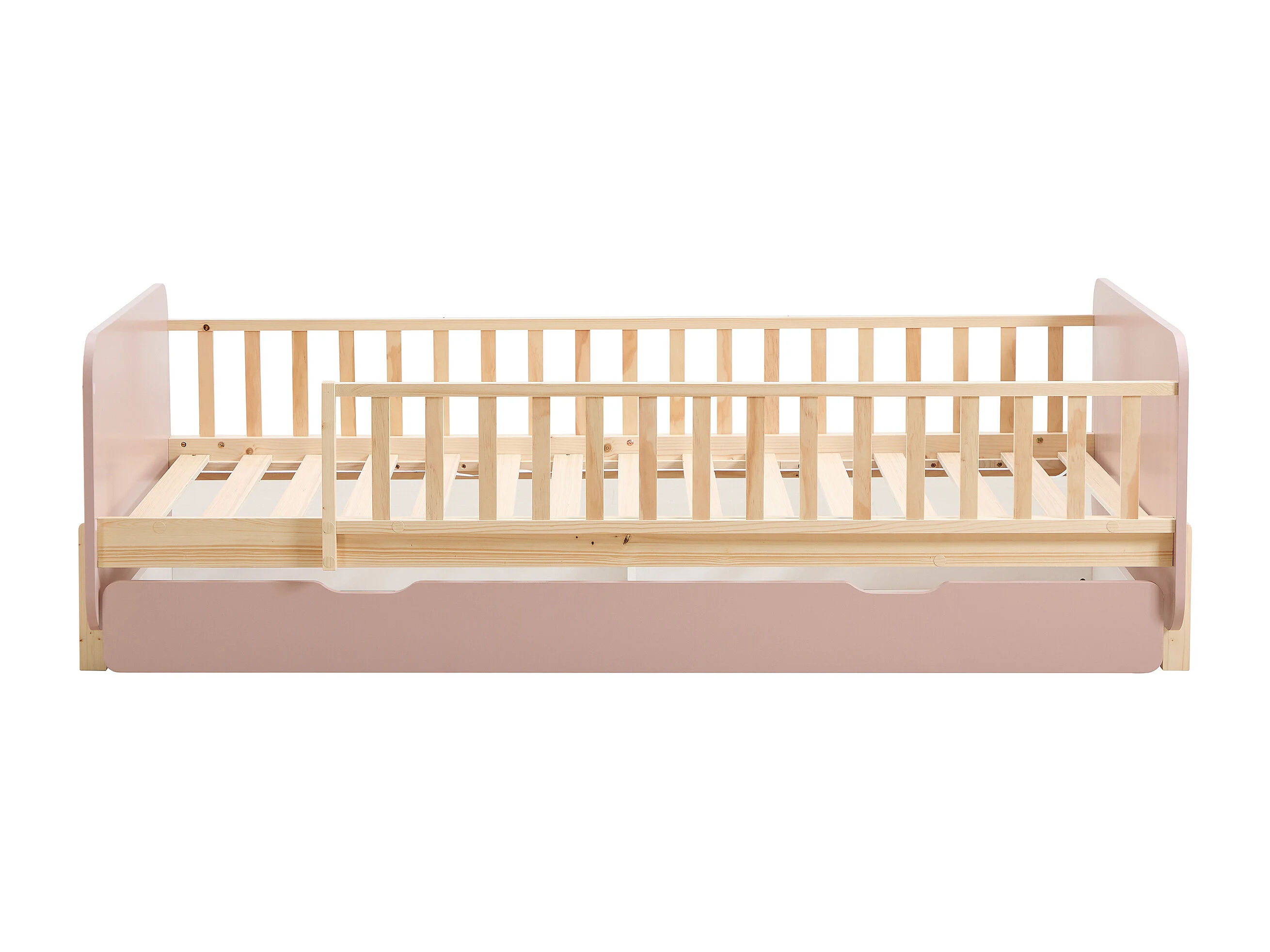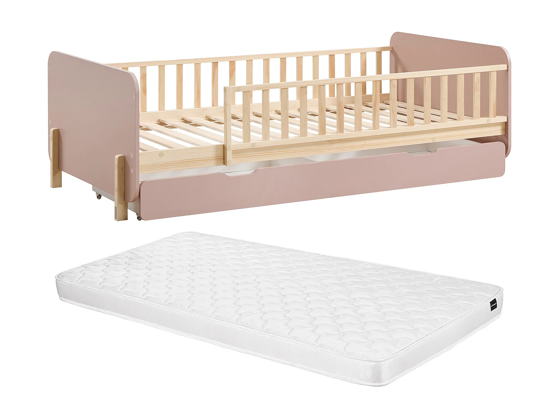 Lit 90 x 190 cm avec tiroir - Pin et MDF - Coloris : Naturel et rose + Matelas - LADEMI