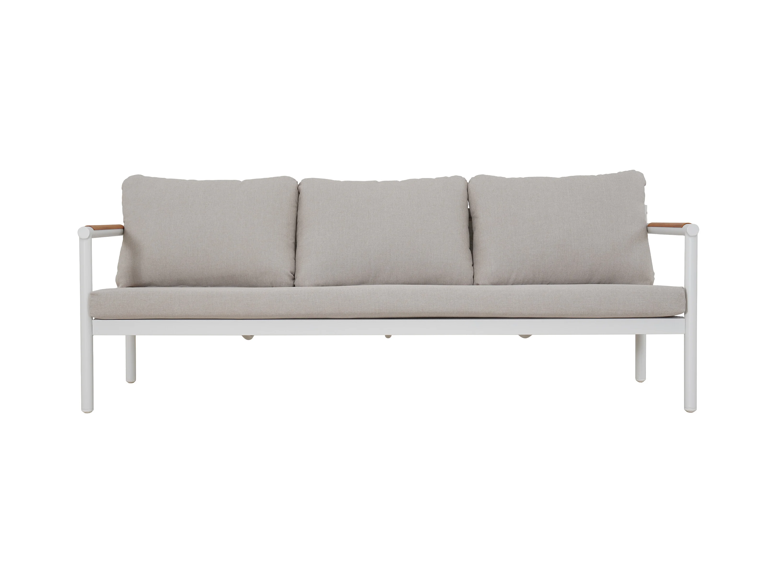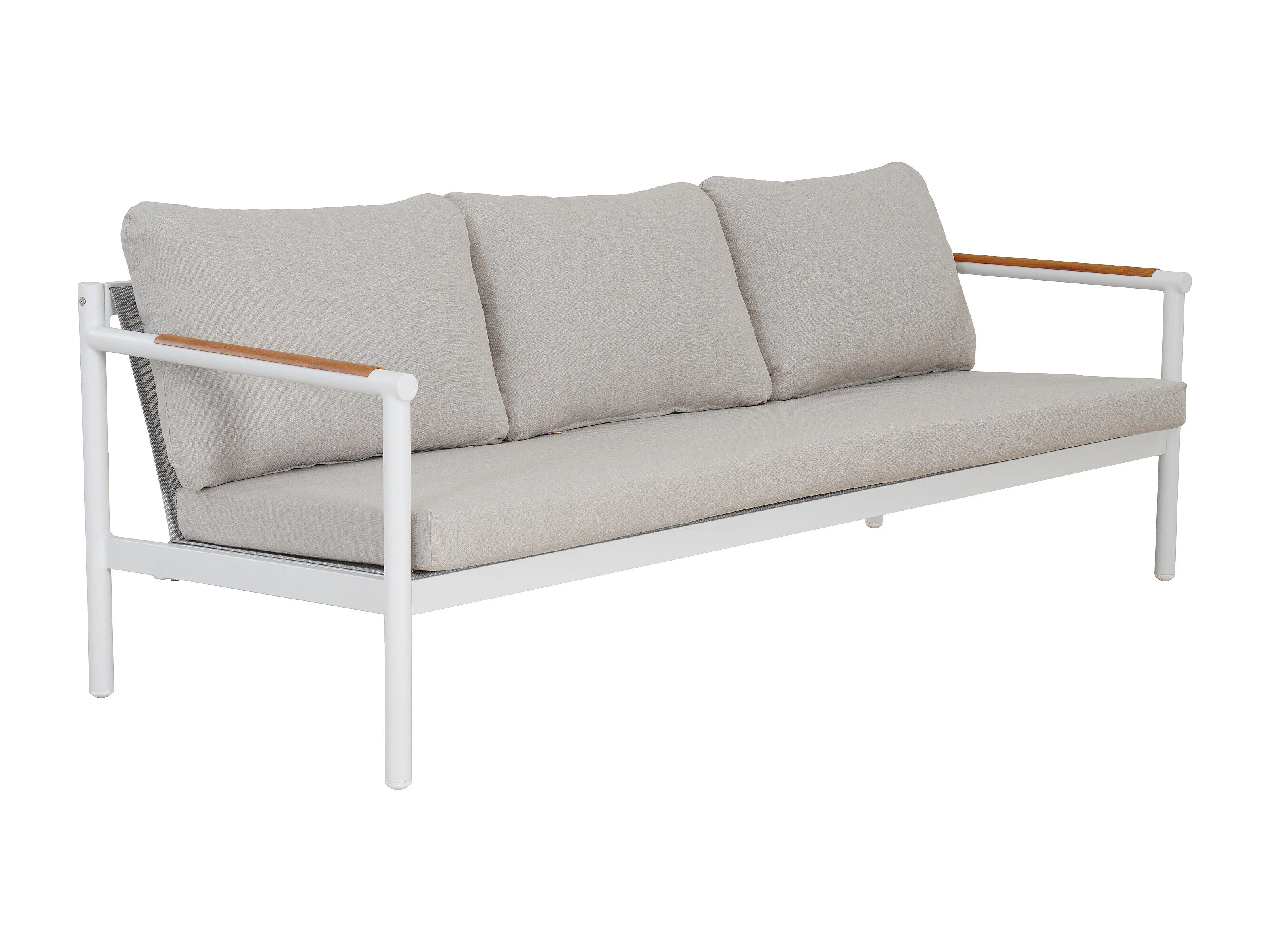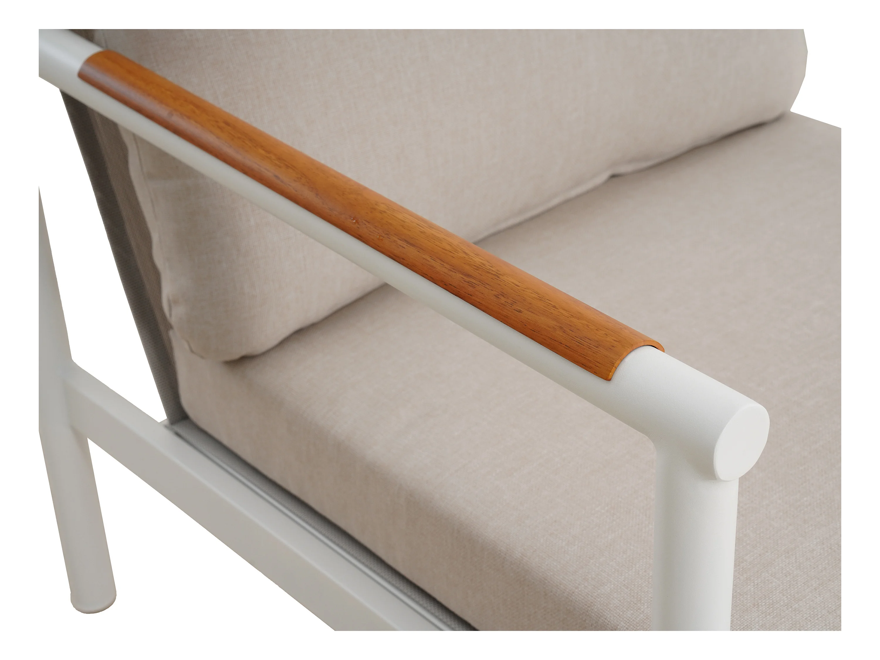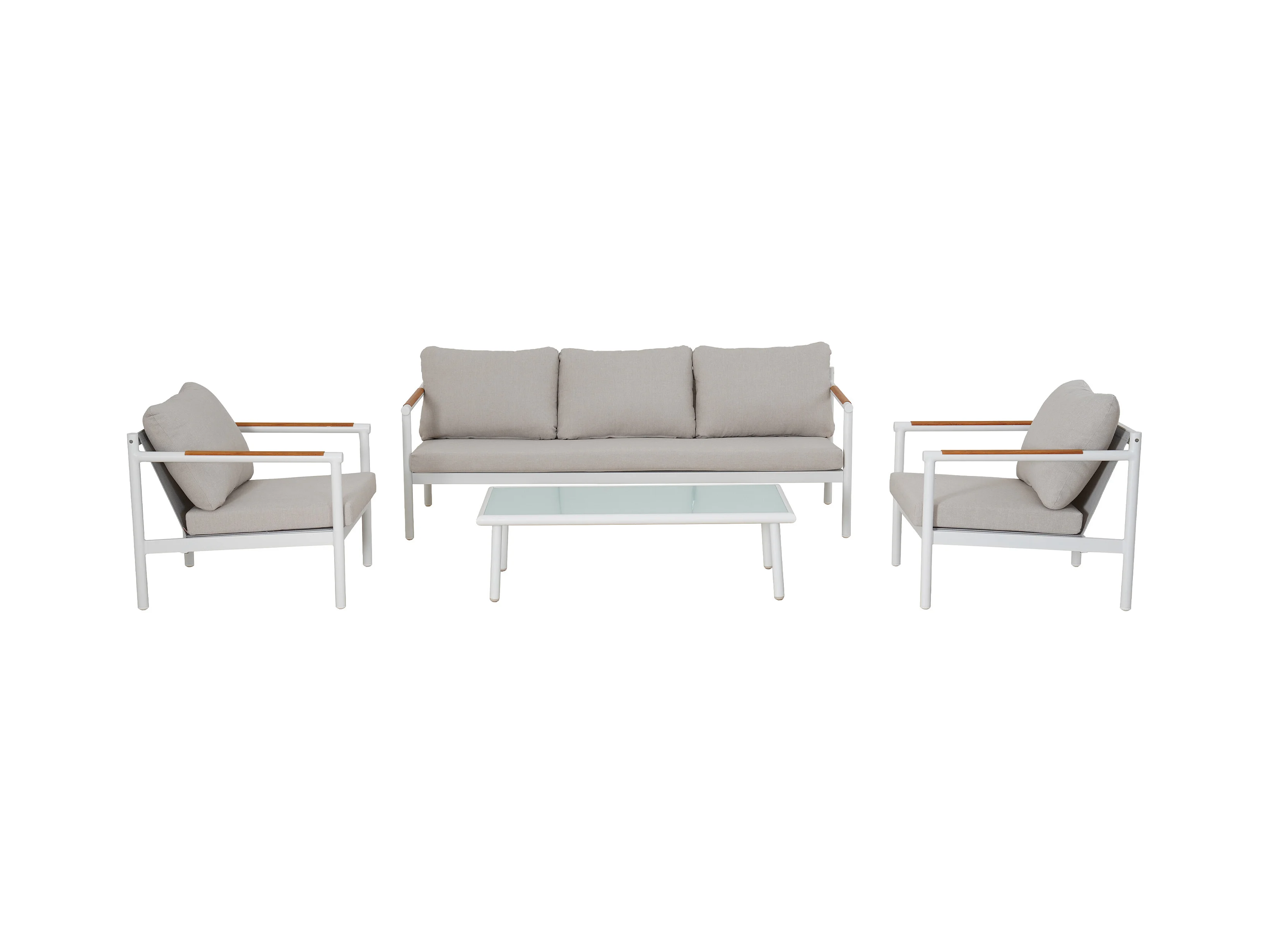 Salon de jardin en aluminium : un canapé 3 places, 2 fauteuils et une table basse - Blanc coussins beiges - LAKIT de MYLIA
