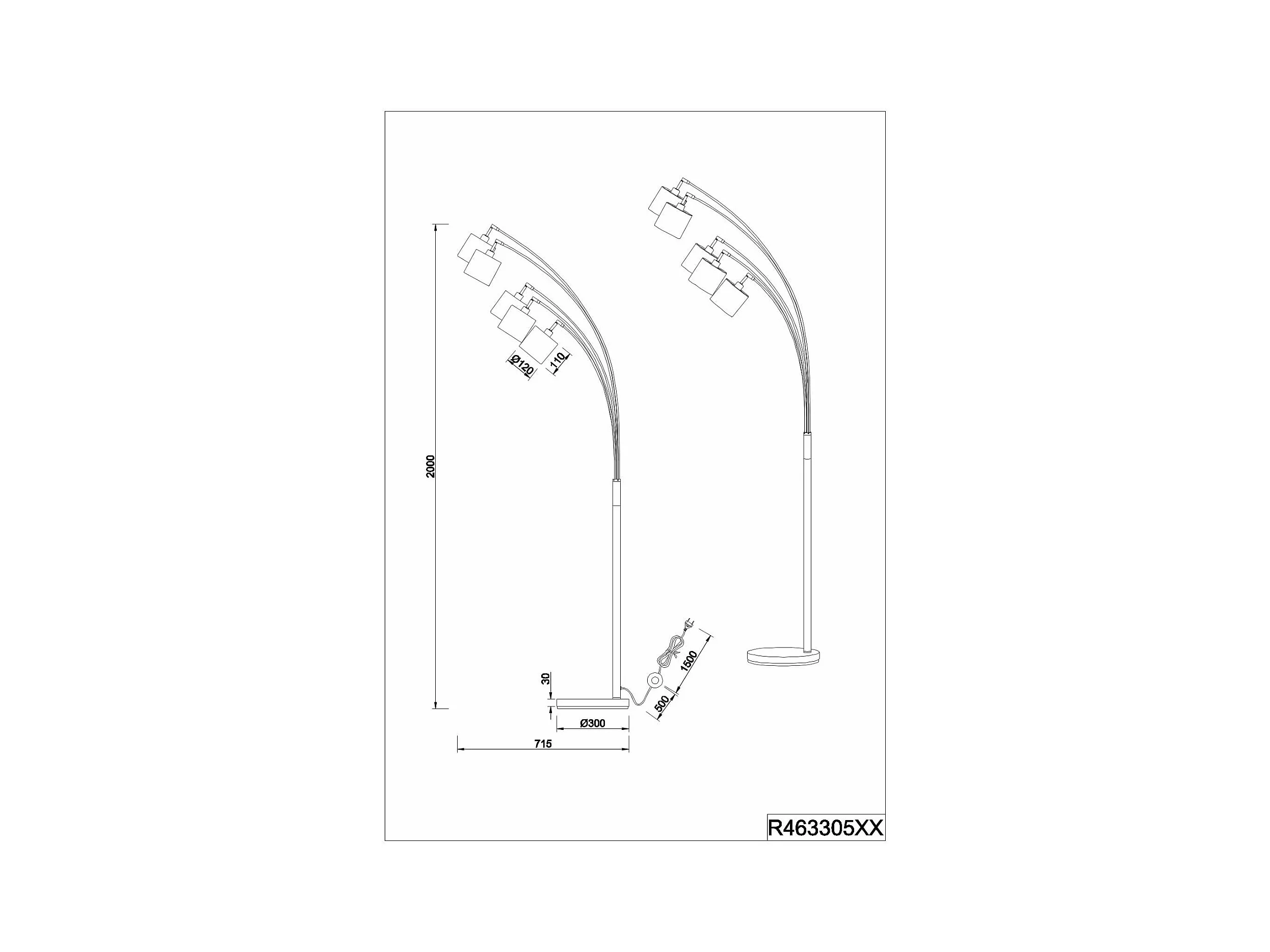 Lampadaire arc 5 lampes Tommy