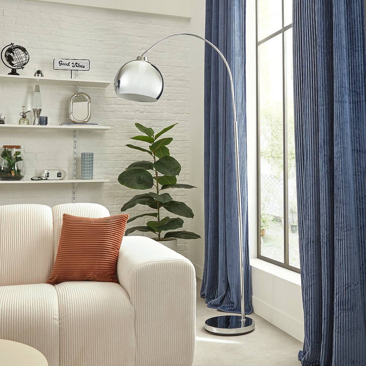 Lampadaire arc orientable, abat-jour sur pied en acier chromé - Longueur 70,5 x largeur 29 x Hauteur 177 cm