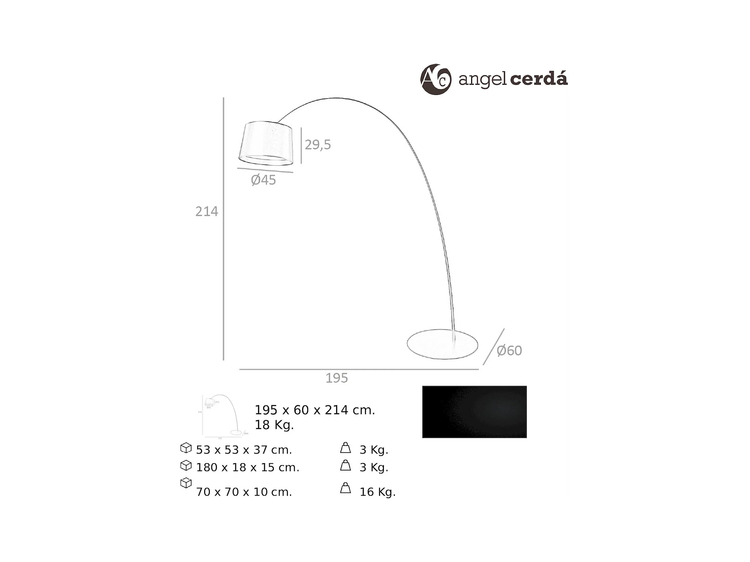 Lampadaire arqué noir mat Angel Cerda réglable en hauteur