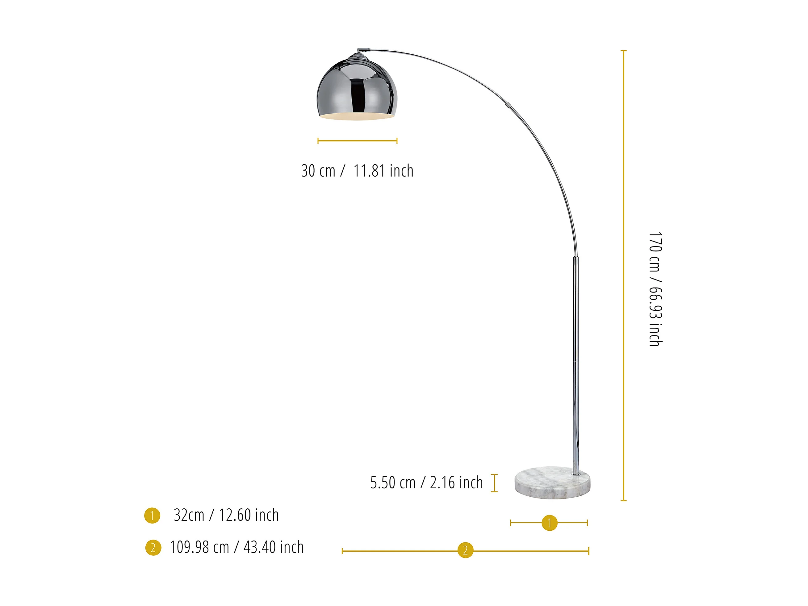 Lampadaire Arquer arc lampe de salon abat-jour chromé pied marbre blanc