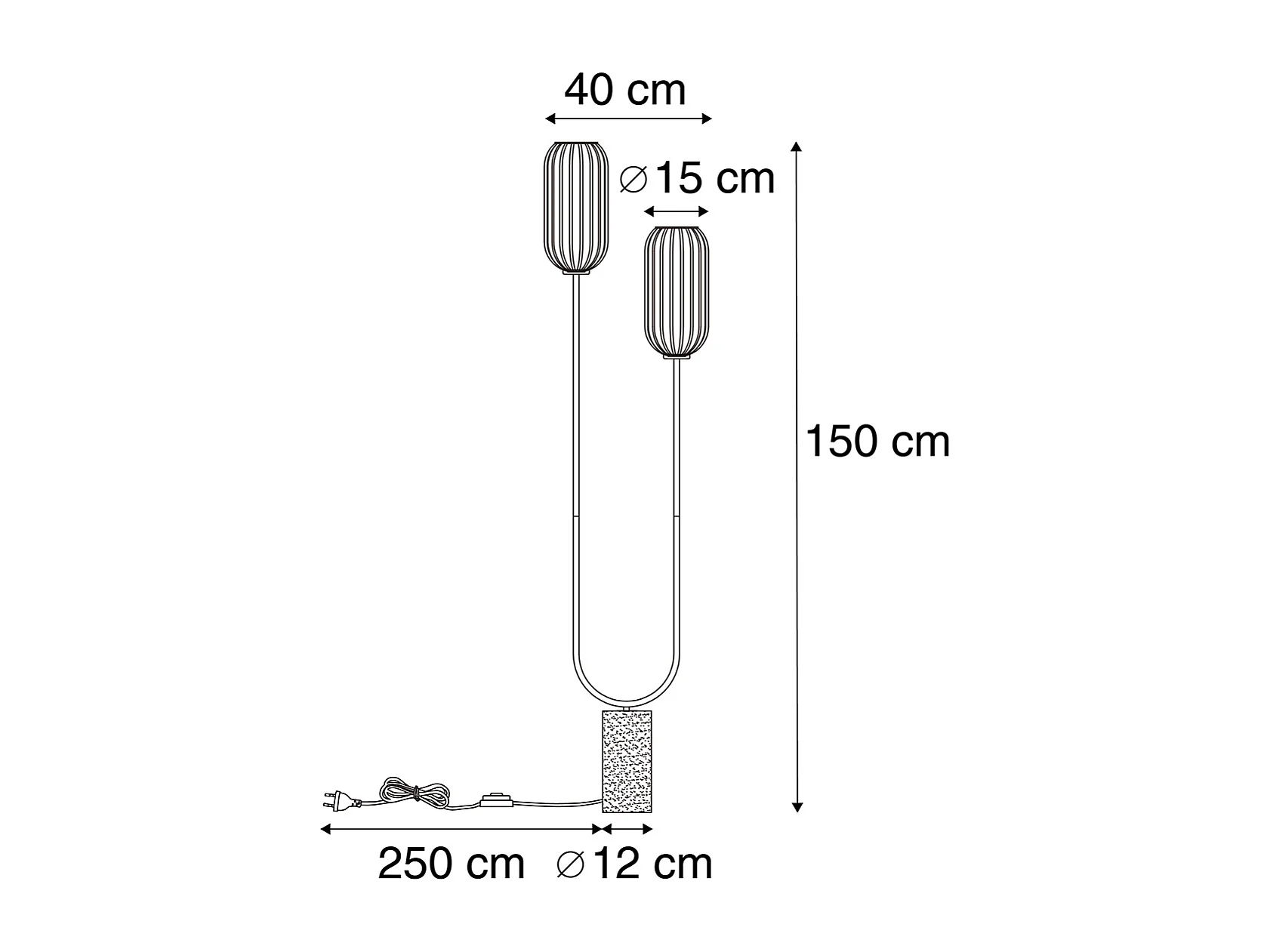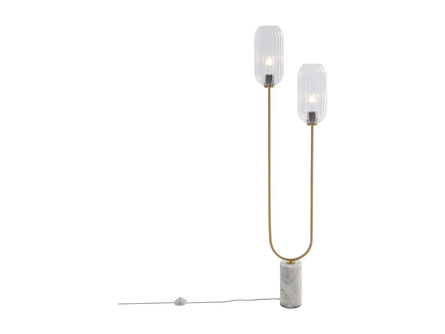 Lampadaire Art Déco en laiton avec verre clair 2 lumières - Rid