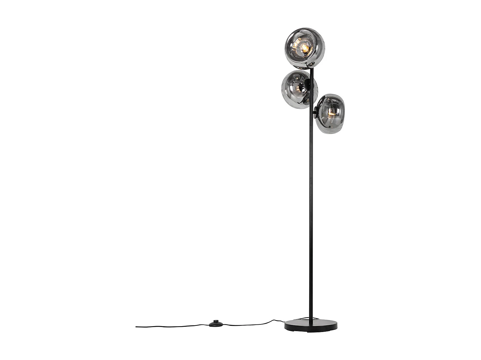 Lampadaire Art Déco noir avec verre fumé 3 lumières - Ayesha