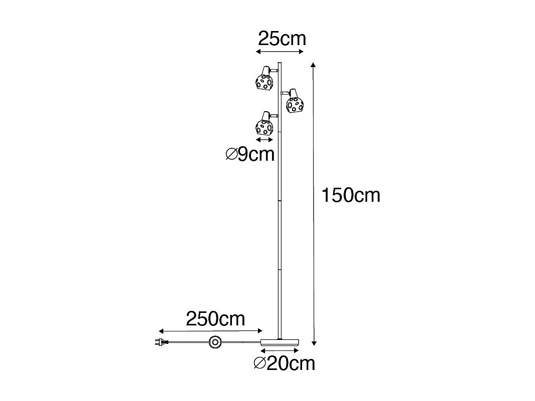 Lampadaire design noir avec or 3 lumières orientables - Mesh