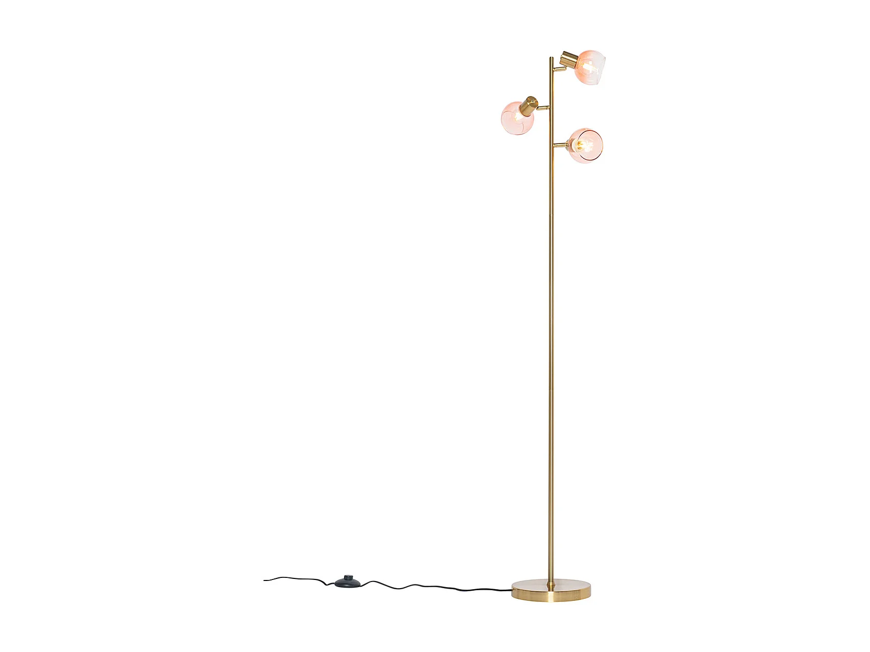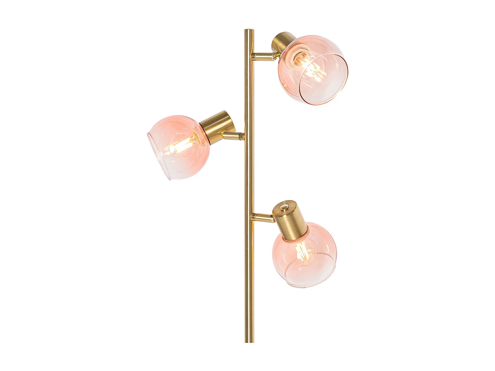 Lampadaire Art Déco doré avec verre rose 3 lumières - Vidro