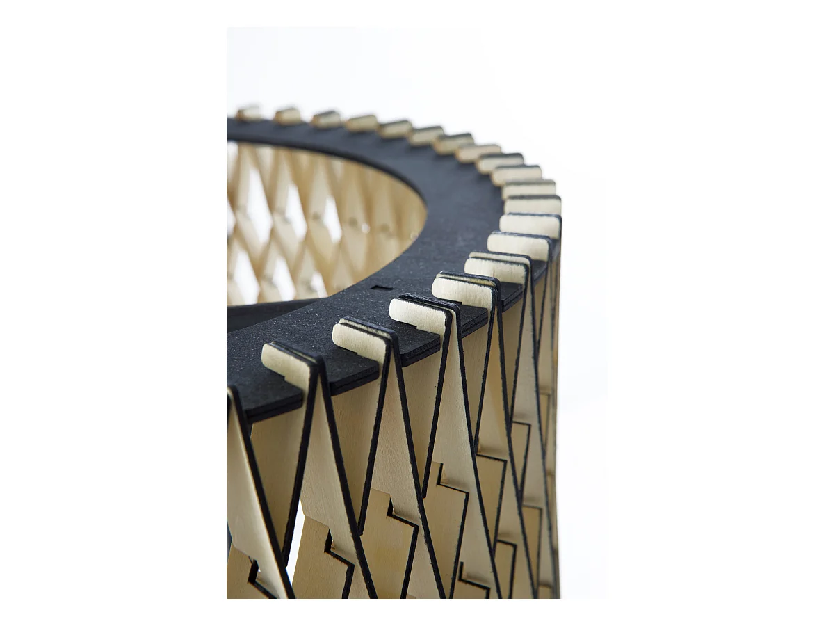 Lampe sur pied avec abat-jour en contreplaqué miel et noir
