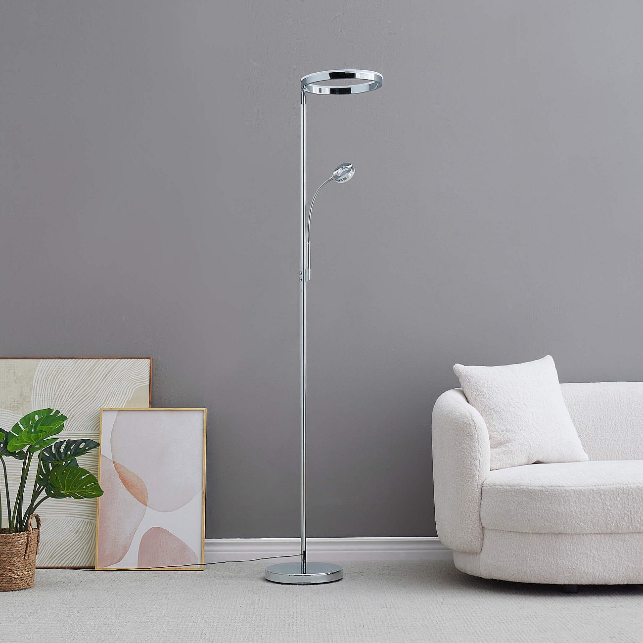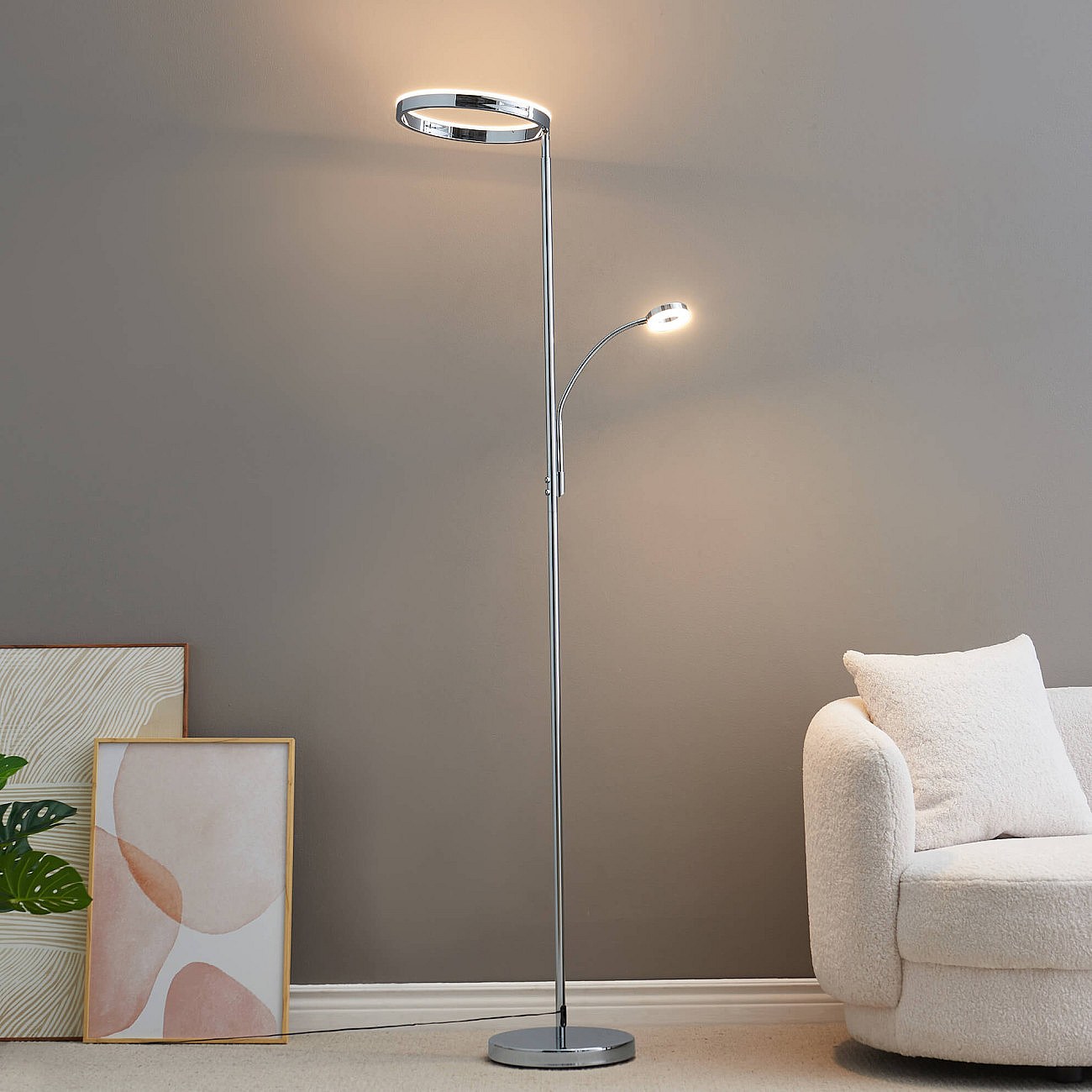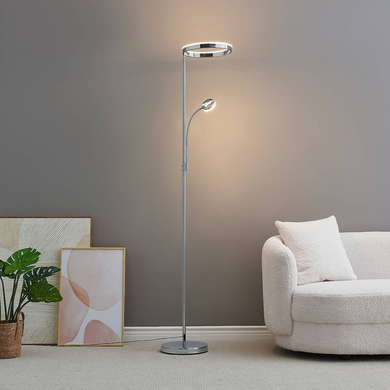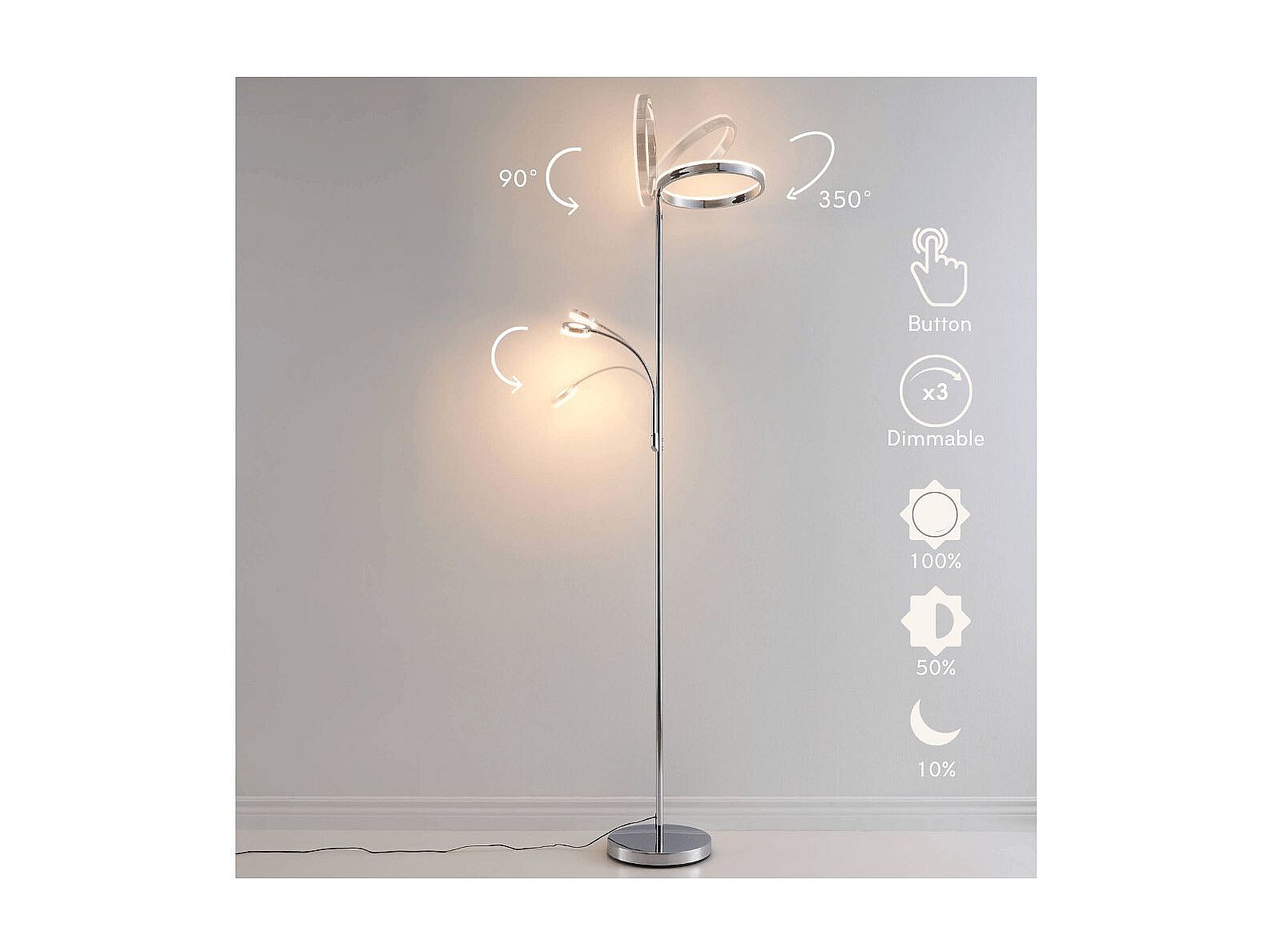 Lampadaire chromé dimmable double éclairage LED - Pancho