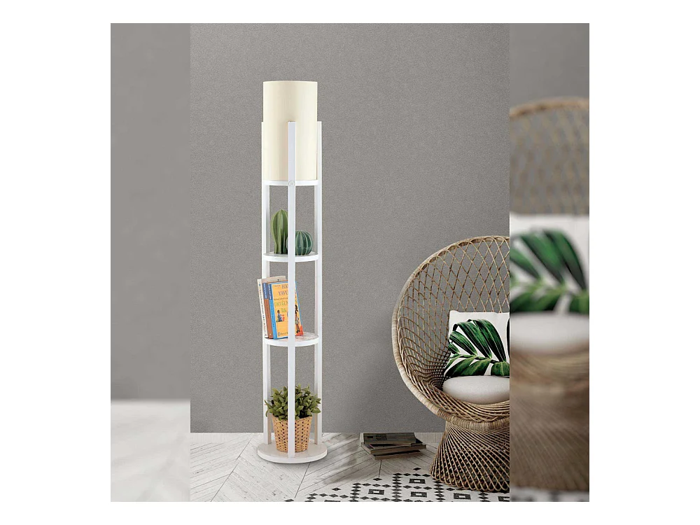 Lampadaire étagère design 26L x 26l x 159H cm 3 étagères E27 MDF blanc