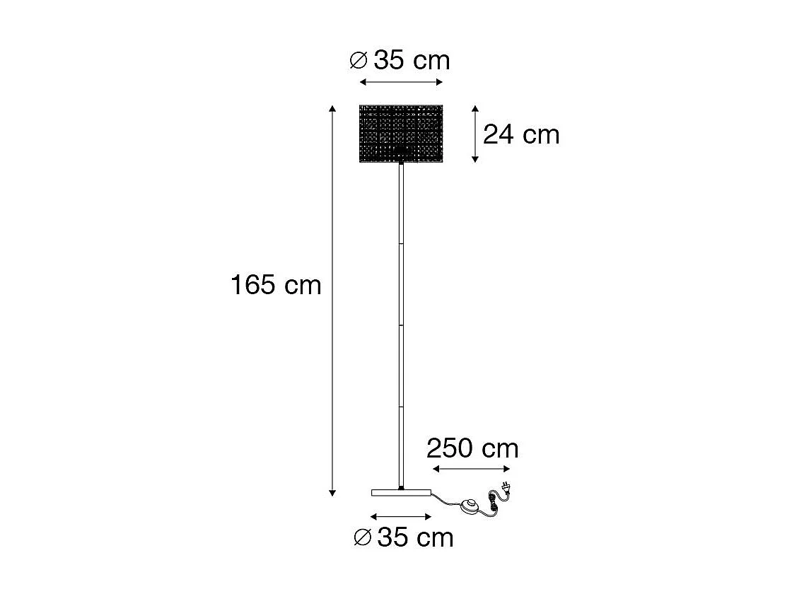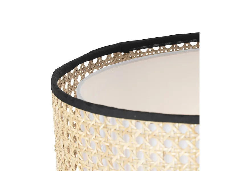 Lampadaire rustique noir avec abat-jour en rotin - Kata