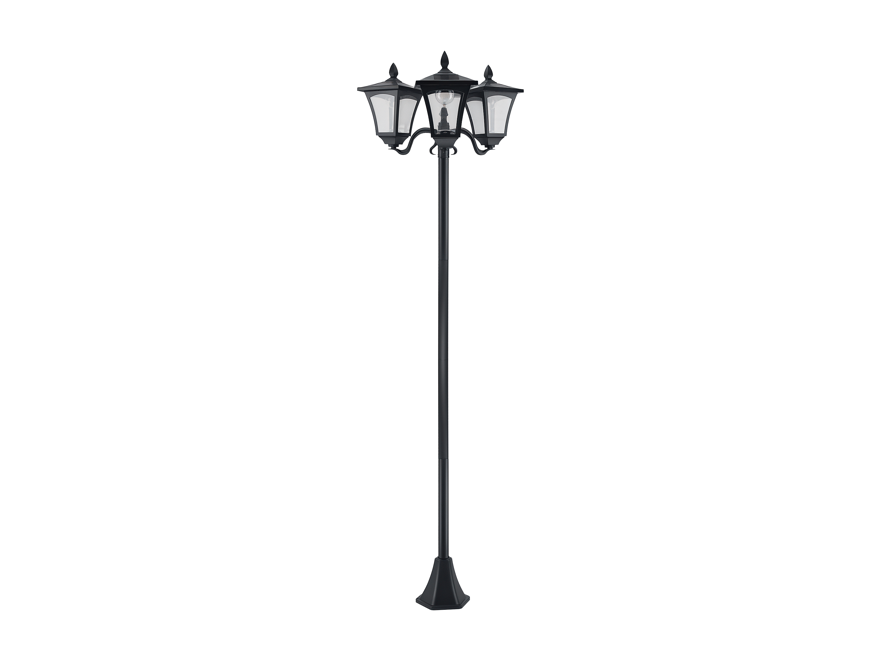 Lampadaire de jardin luminaire extérieur solaire LED 3 têtes 120 Lm dim. 51,5L x 47l x 182,5H cm acier inox. plastique noir