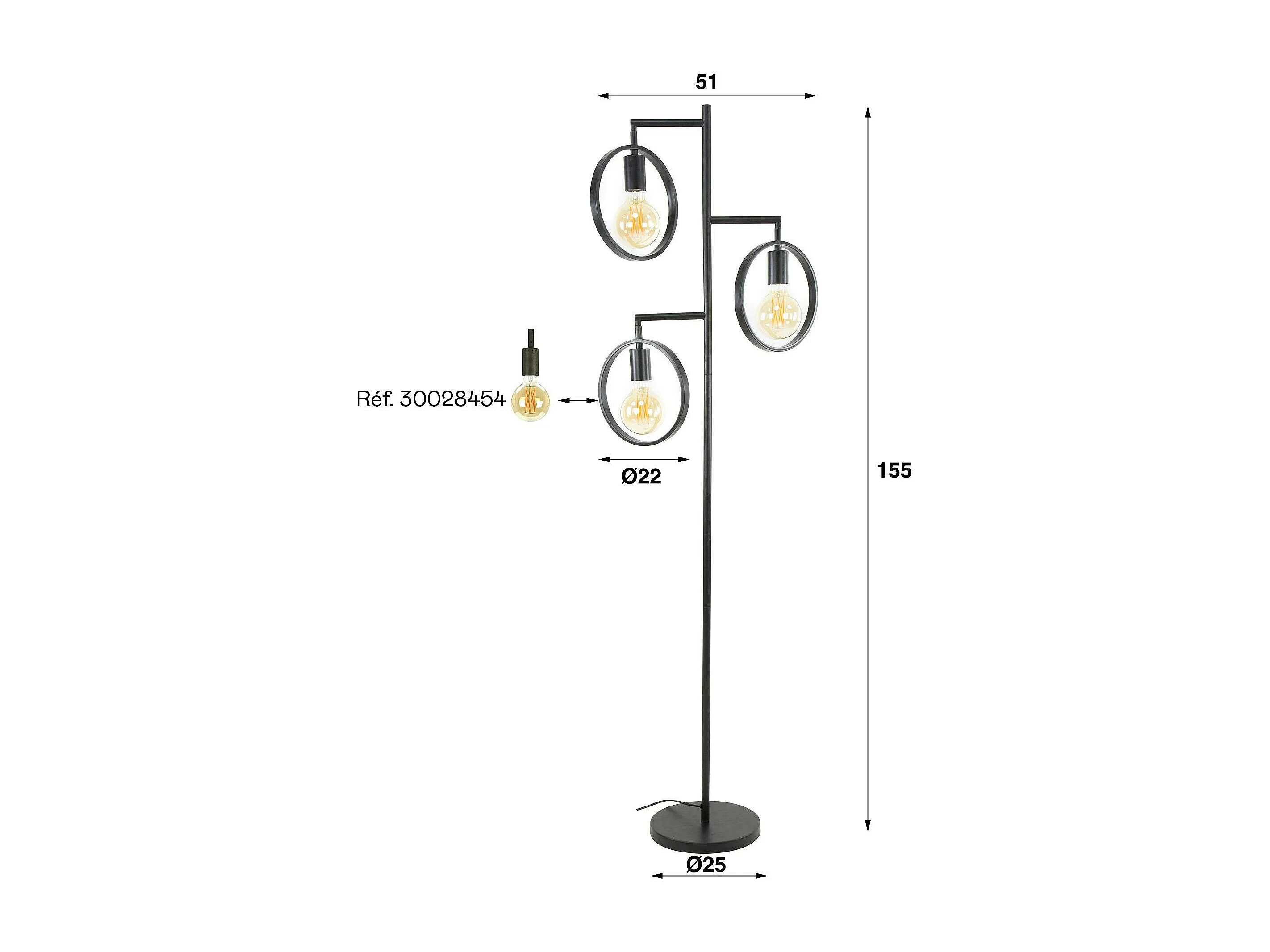 Lampadaire de salon 3 anneaux, finition charbon RALF