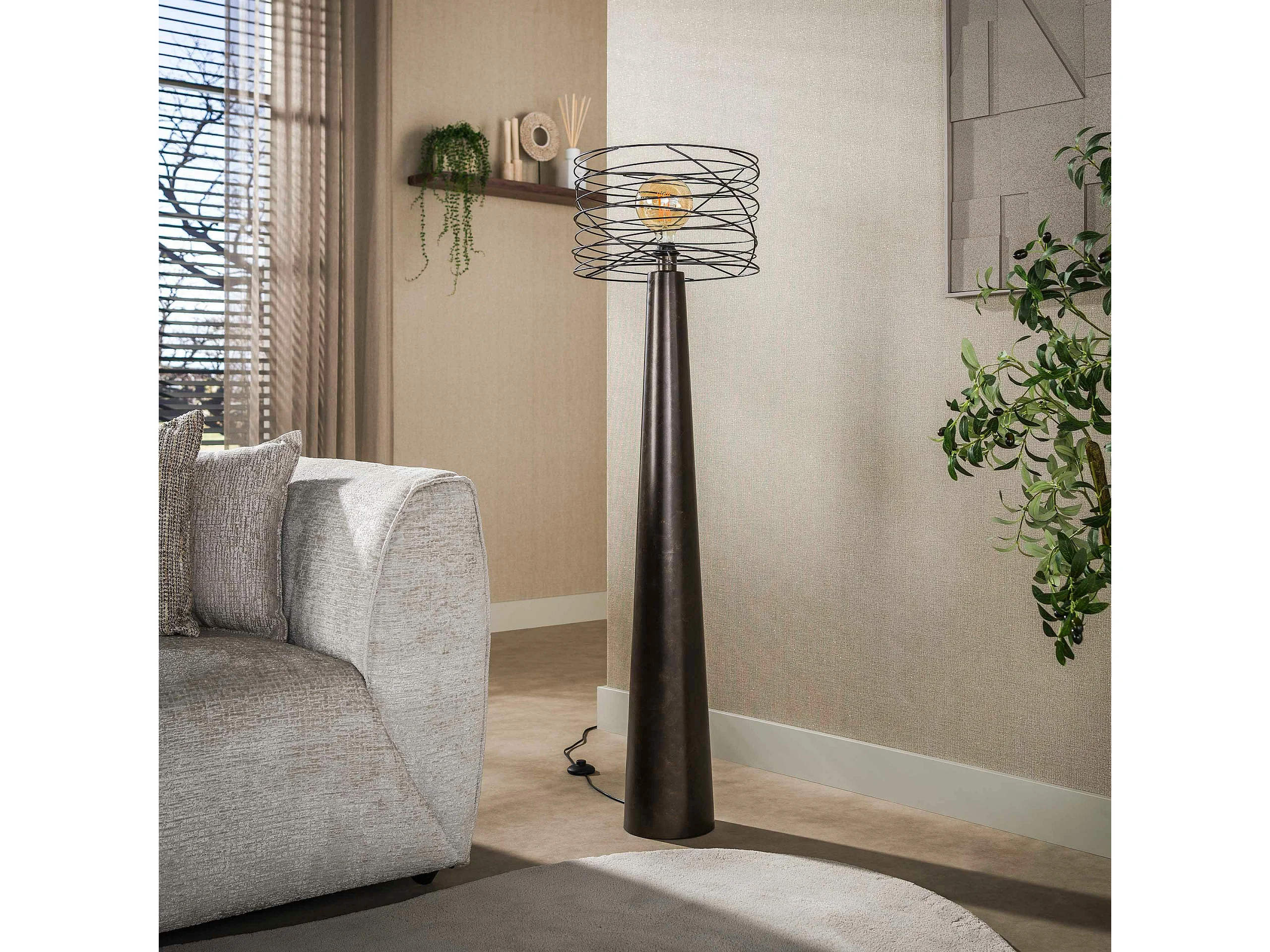 Lampadaire de salon métal marron pied conique RALF