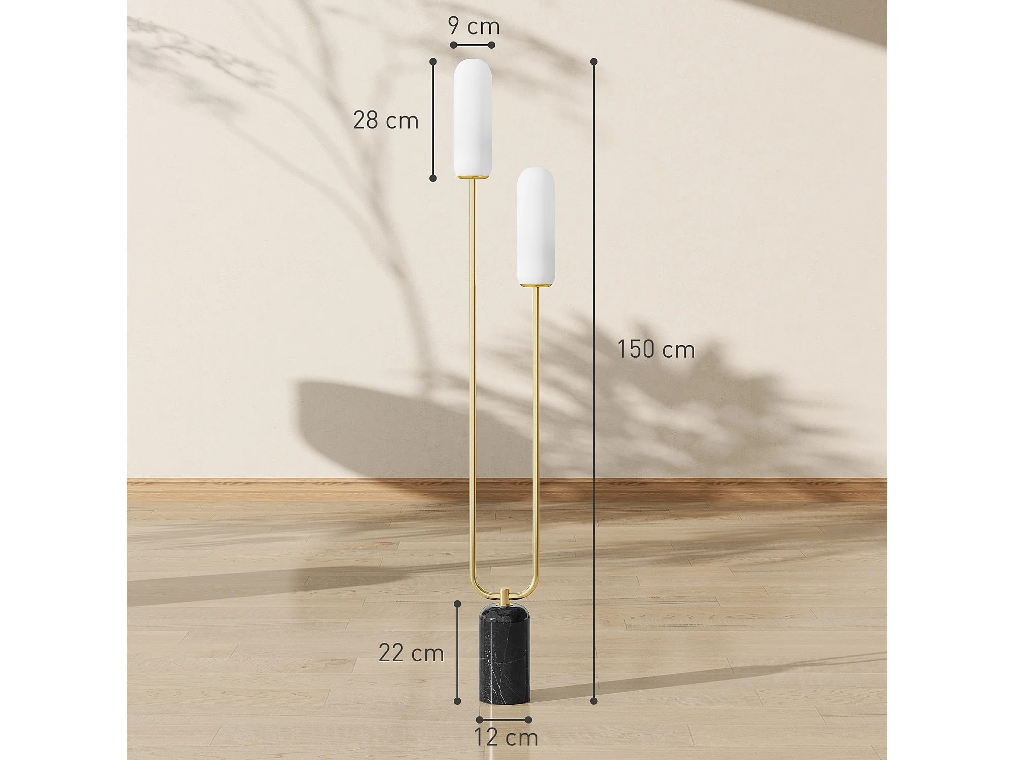 Lampadaire design art déco H.150 cm effet marbre noir métal doré verre dépoli blanc