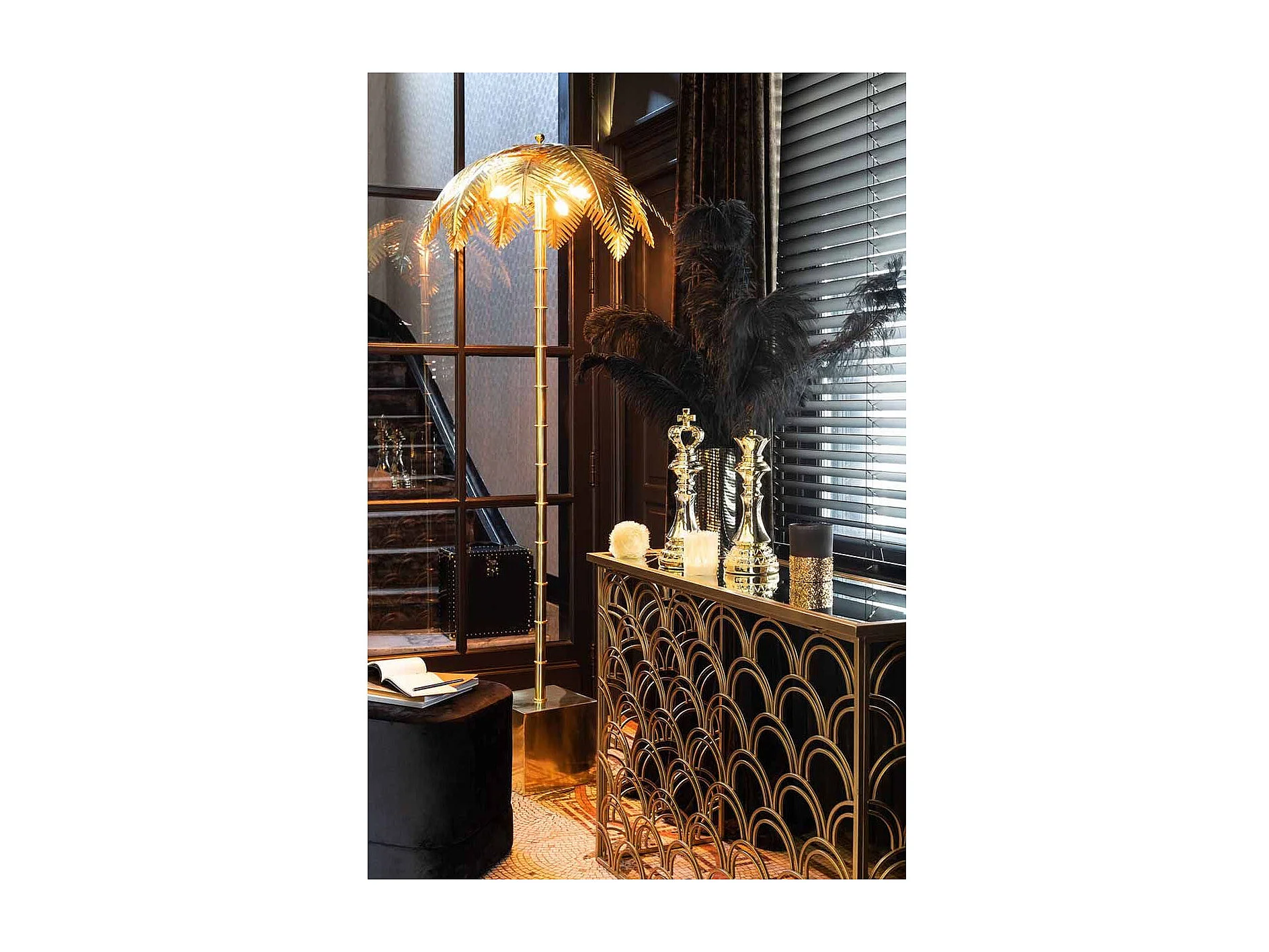 Lampadaire Design "Feuille de Coco" 133cm Or