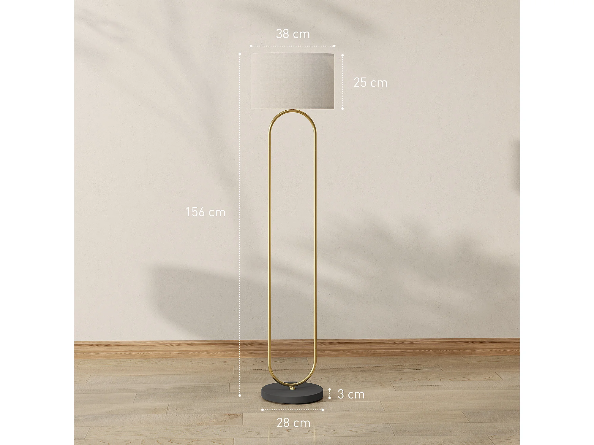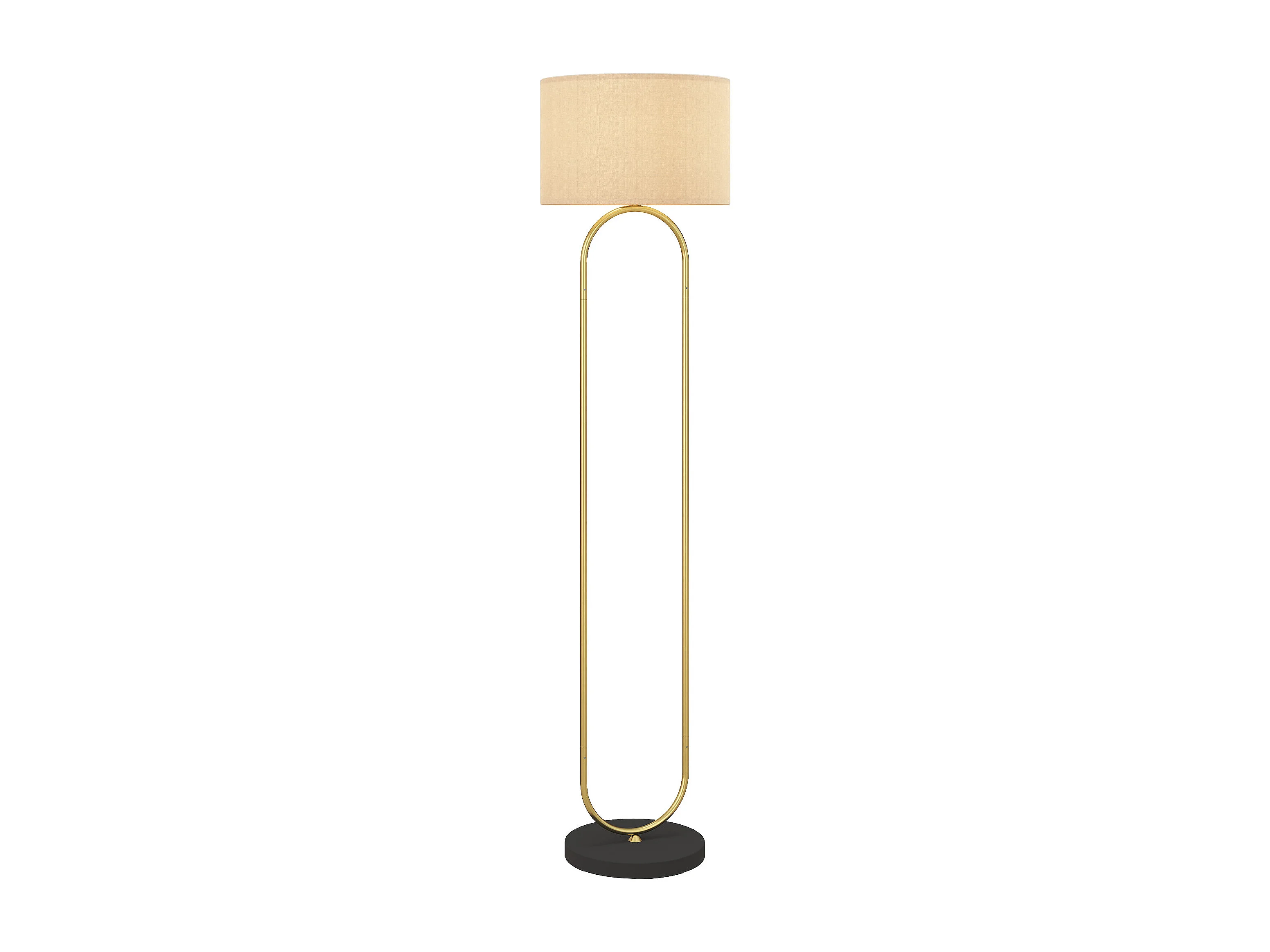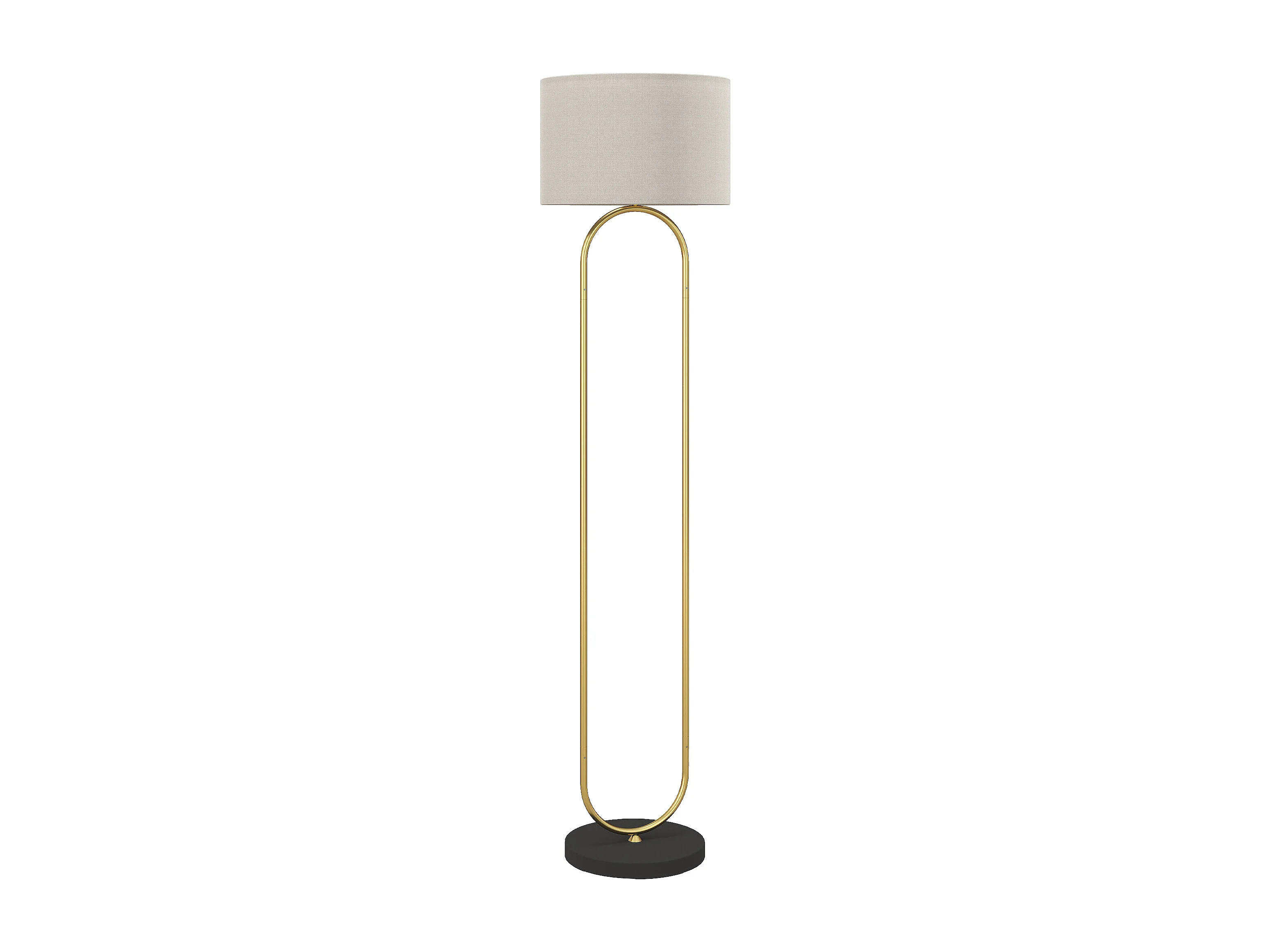 Lampadaire design néo-rétro H.156 cm structure mât métal doré arrondi abat-jour tissu lin