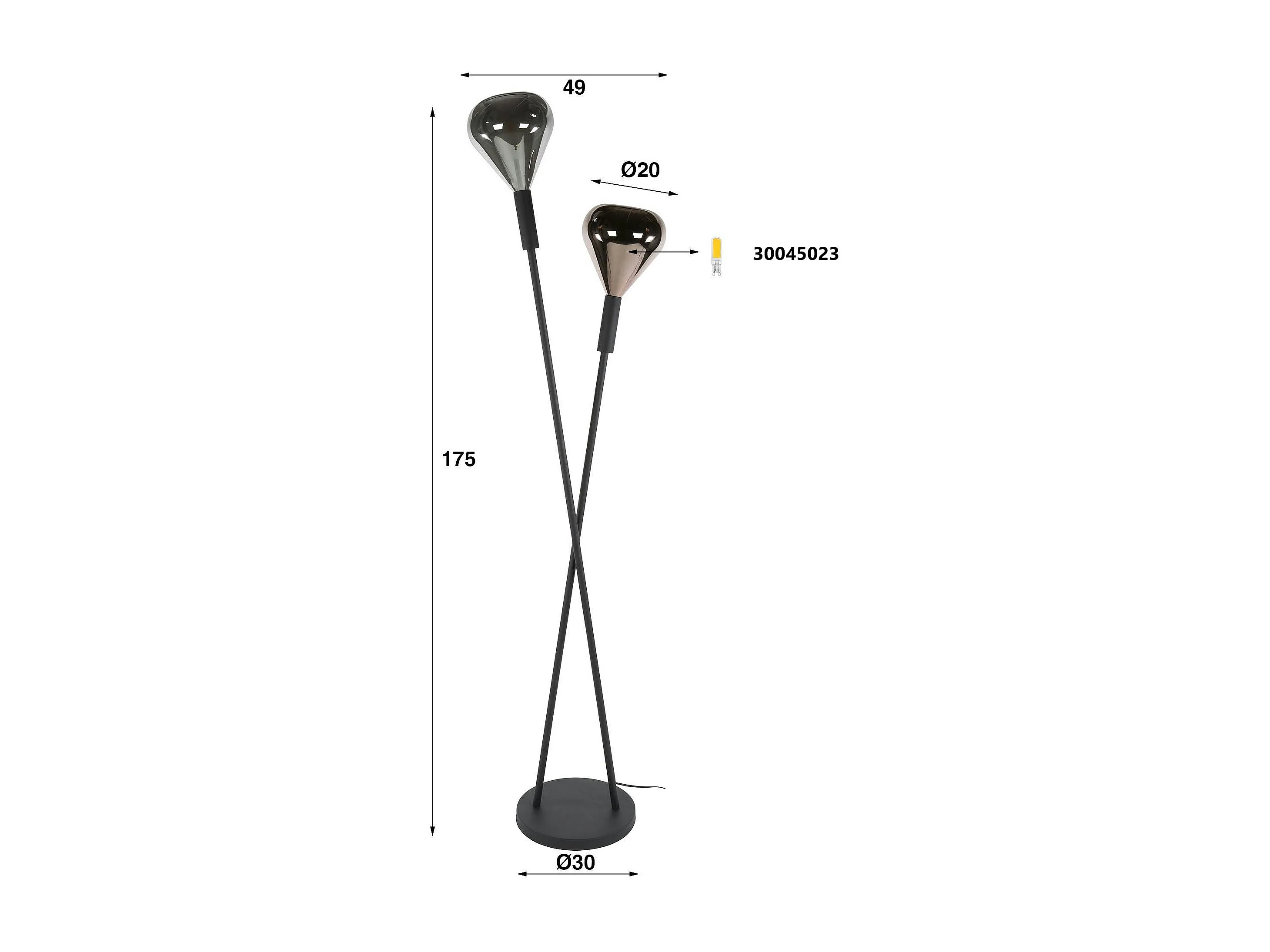 Lampadaire design tiges croisées, 2 abat-jour gouttes NIAGARA