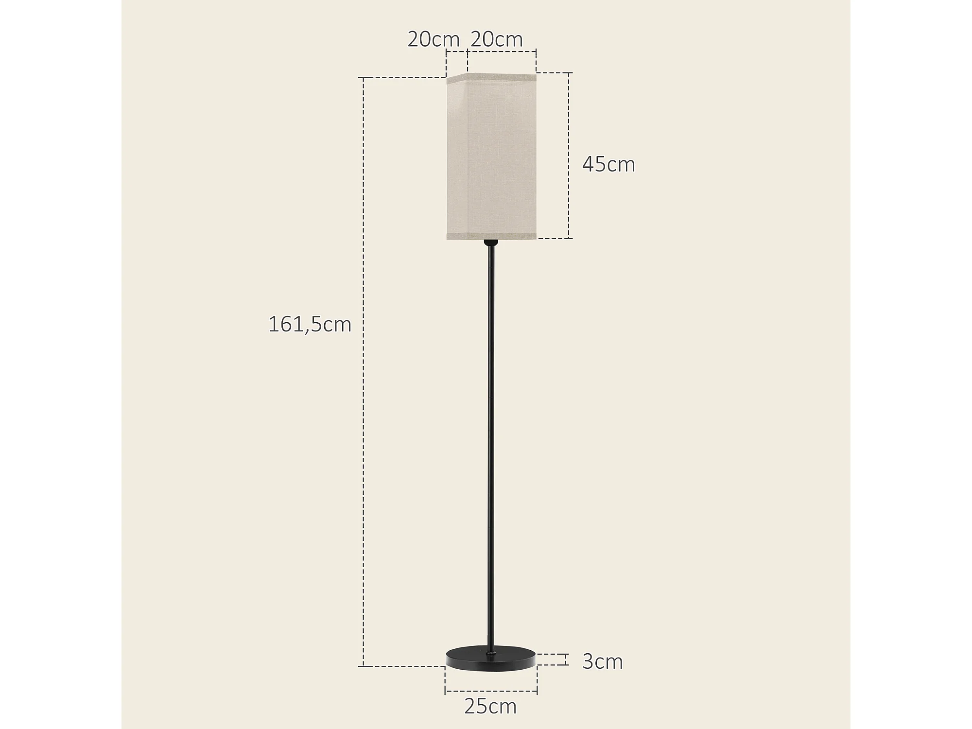Lampadaire droit style contemporain H.161 cm métal noir abat-jour beige effet lin
