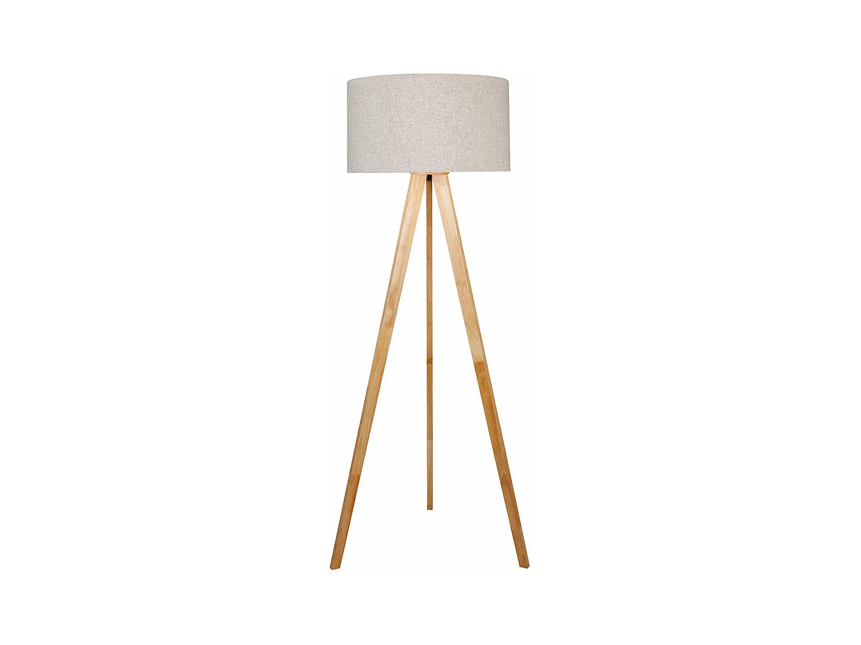 Lampadaire trépied effet bois clair, abat-jour beige KILIS