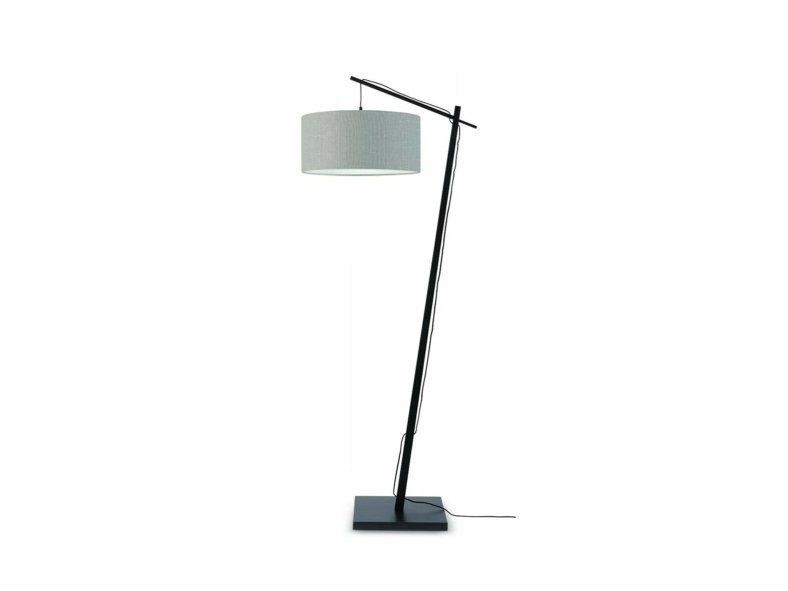 Lampadaire en bambou marron avec abat-jour gris clair