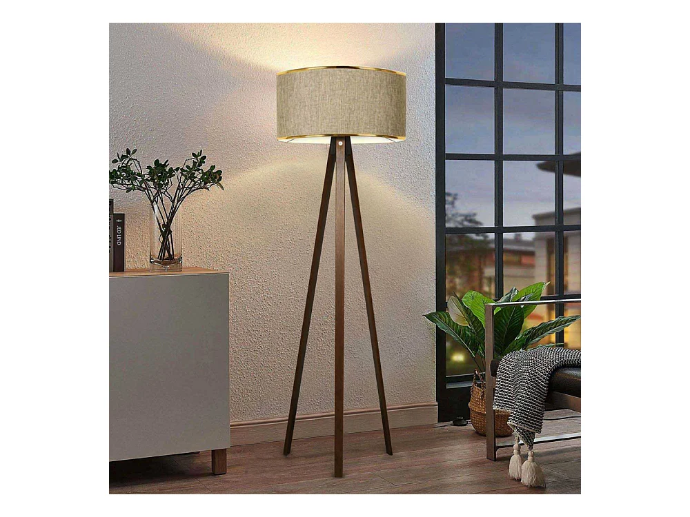 Lampadaire trépied style scandinave 40 W max. dim. 45L x 45l x 152H cm bois de pin lin beige