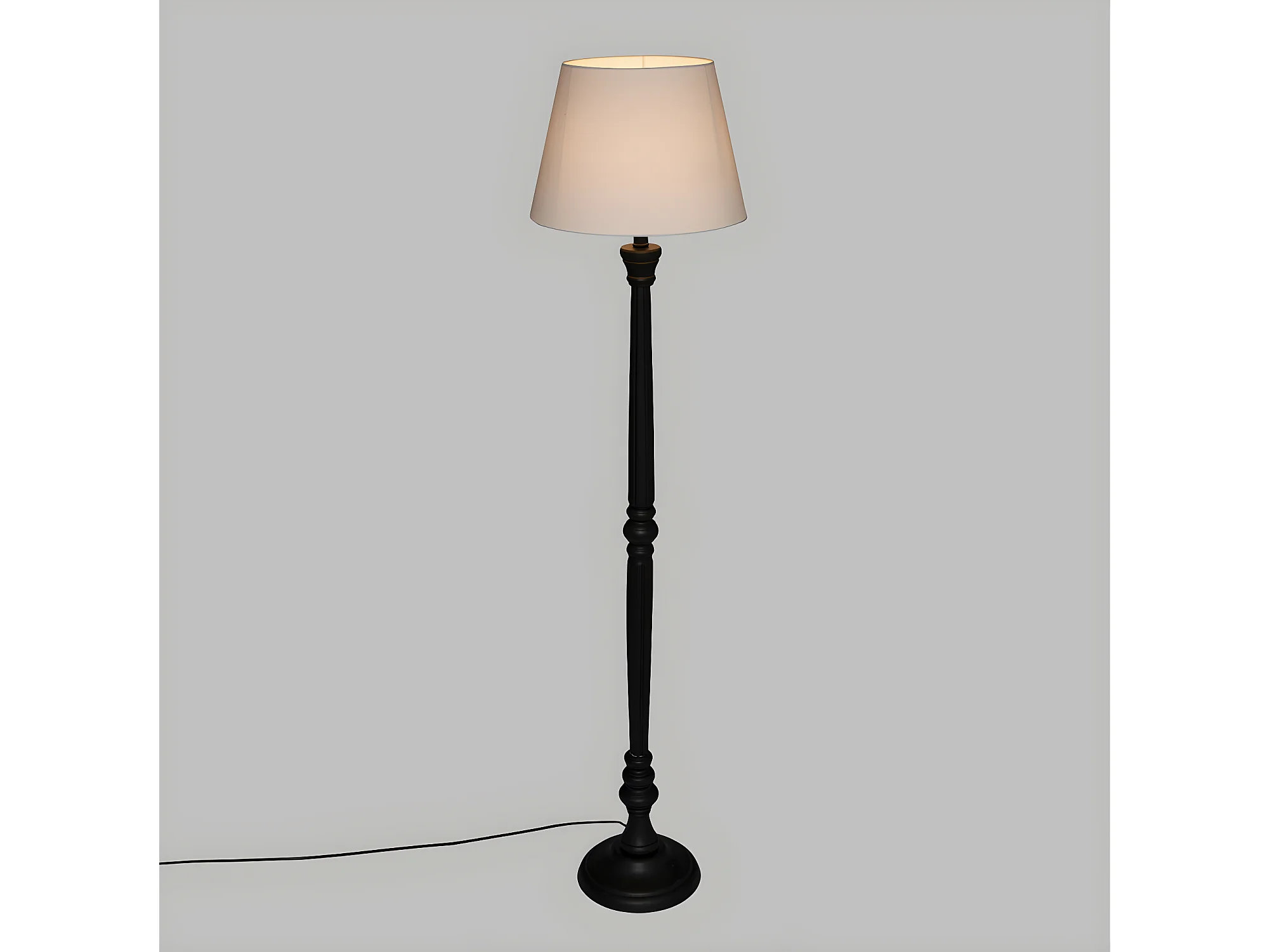 Lampadaire en Bois Noir et Abat-jour Blanc H 156 cm