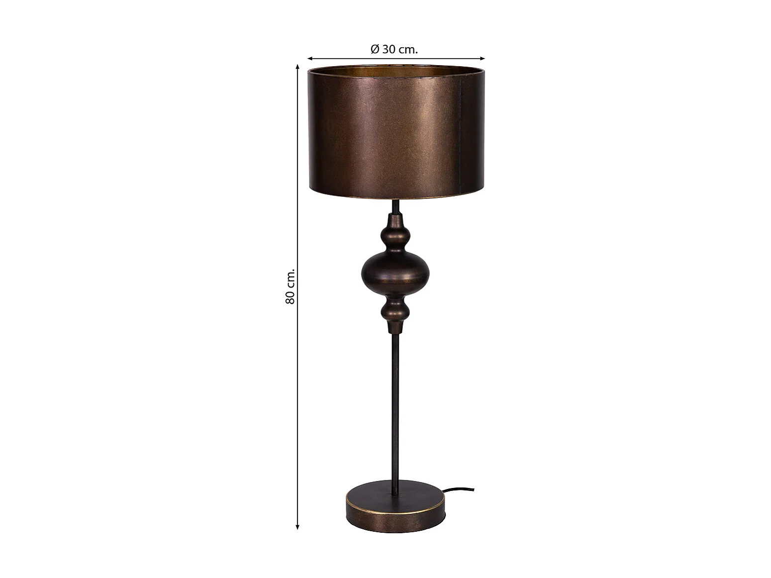 Lampe de bureau conique bois naturel,cuivre 42 cm.