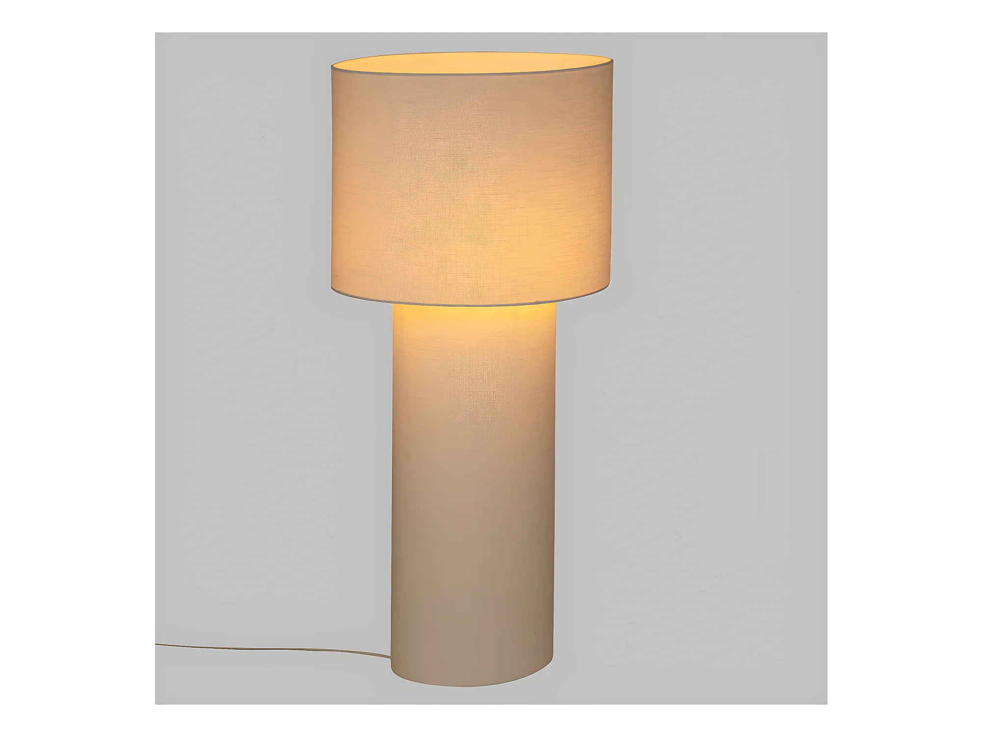 Lampe à poser en tissu et travertin D.25 x H.58 cm - Blanc et naturel - ZAPANA