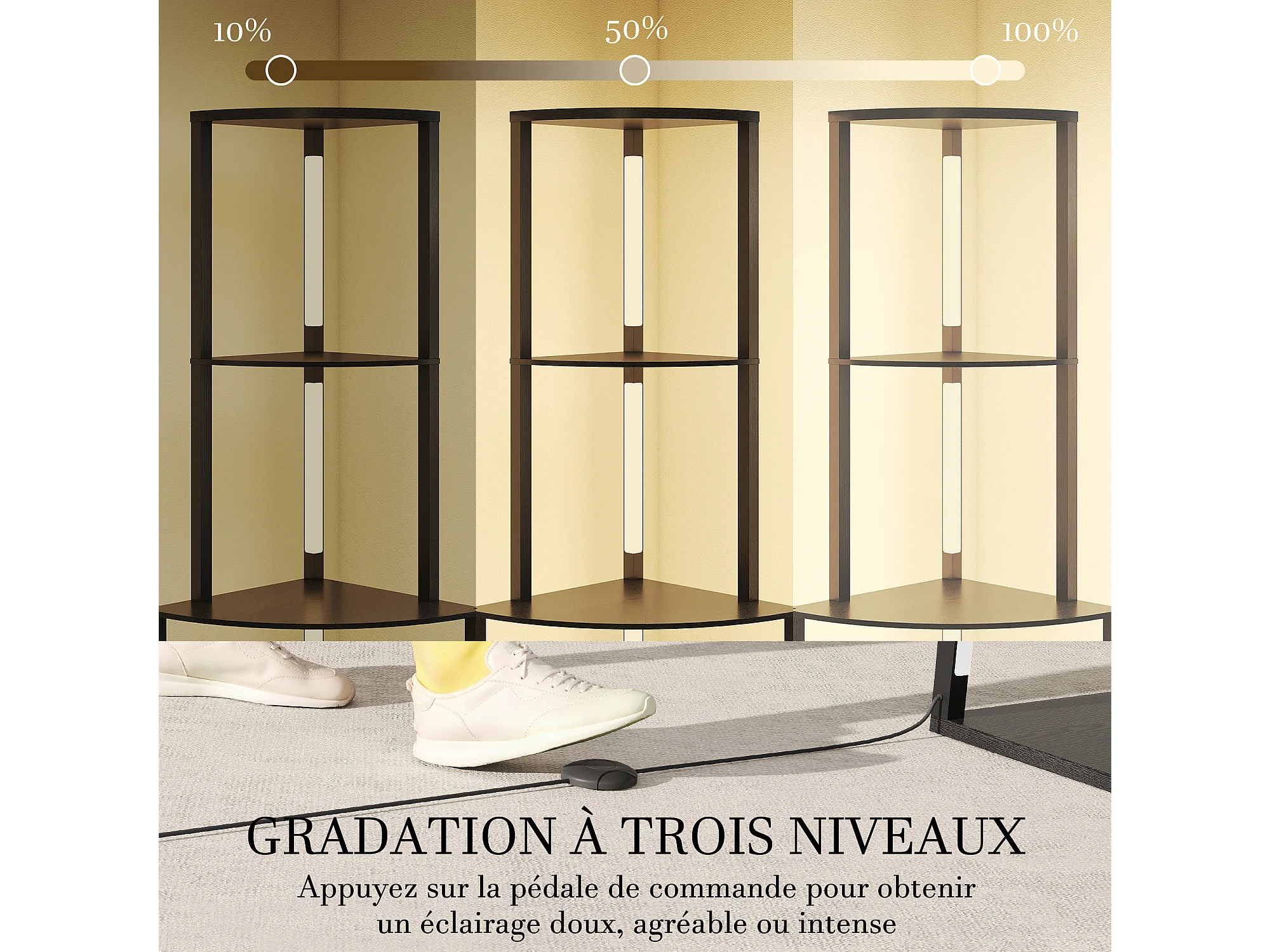 Lampadaire étagères design LED H.163 cm 4 niveaux luminosité réglable MDF noir