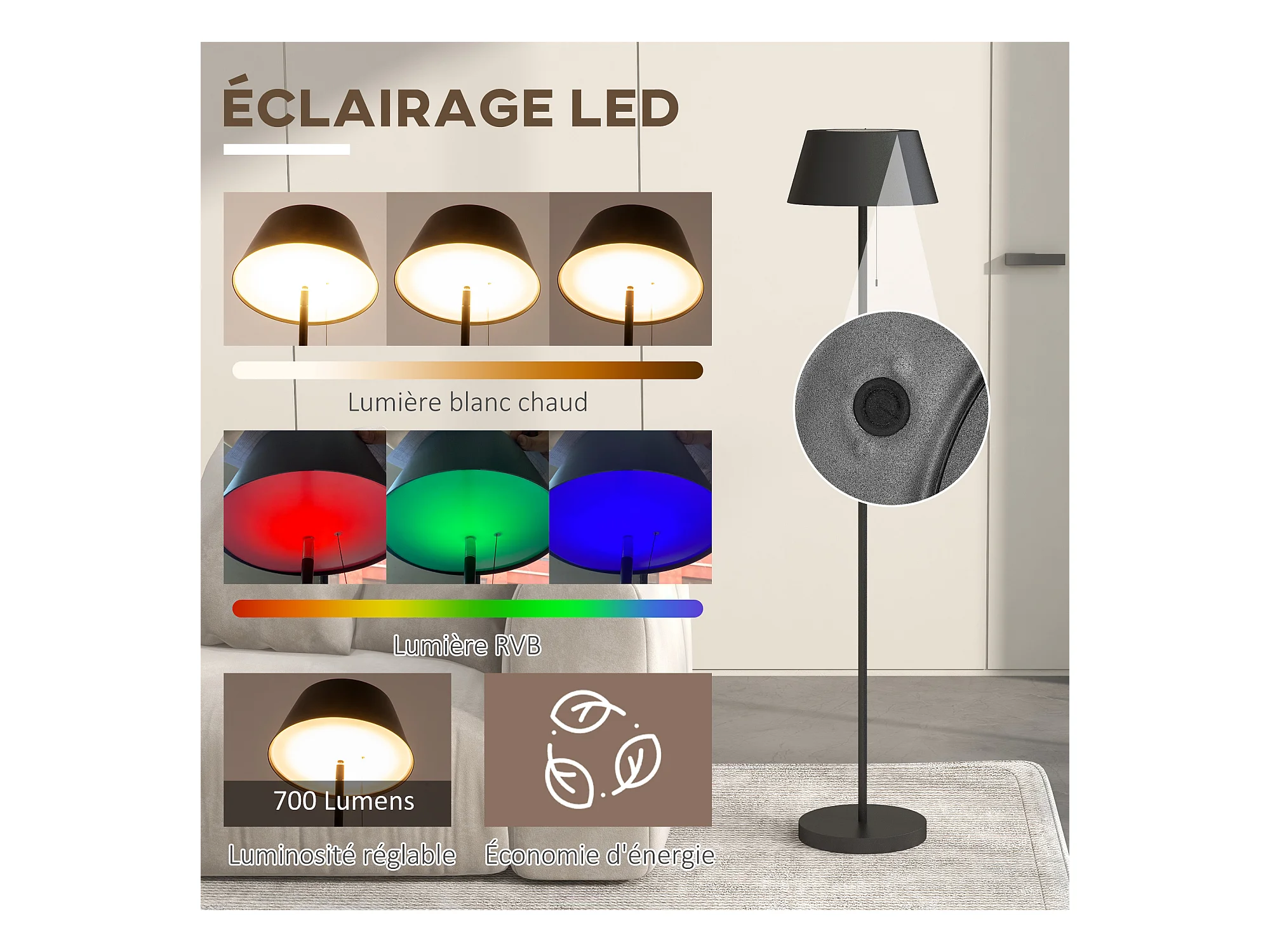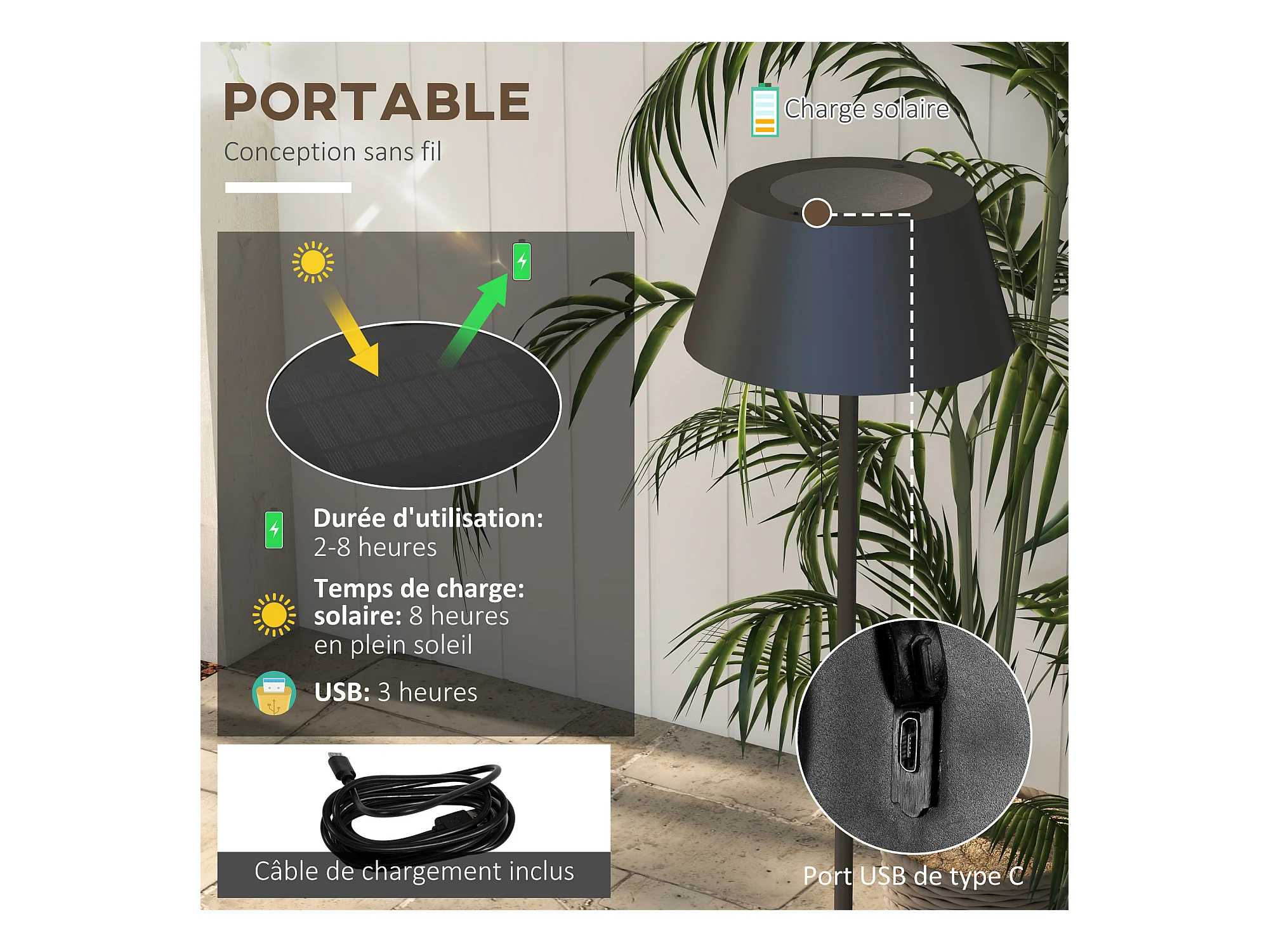 Lampadaire extérieur solaire LED sans fil rechargeable USB réglable alu ABS noir