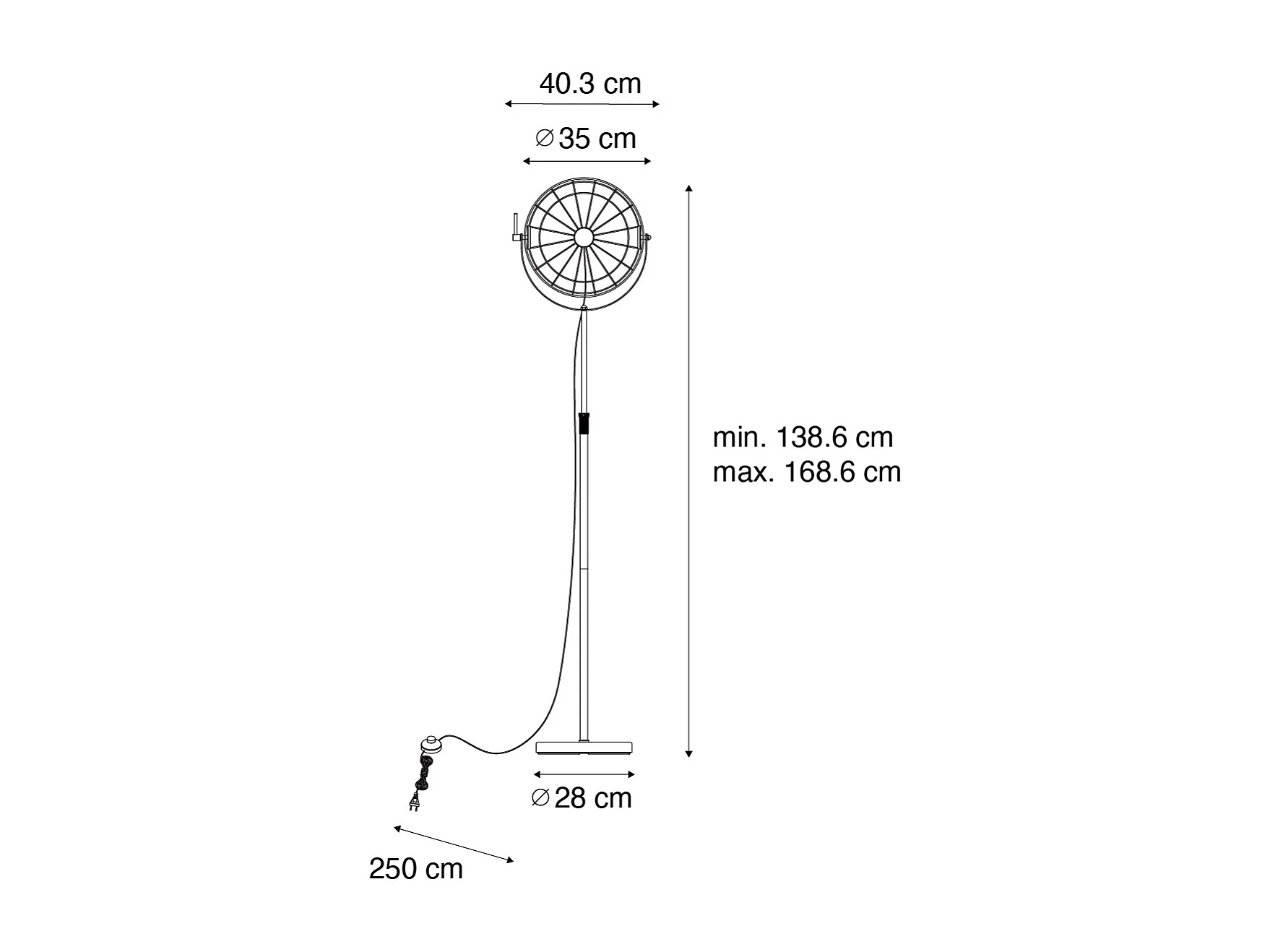 Lampadaire industriel noir 50 cm réglable - Hanze