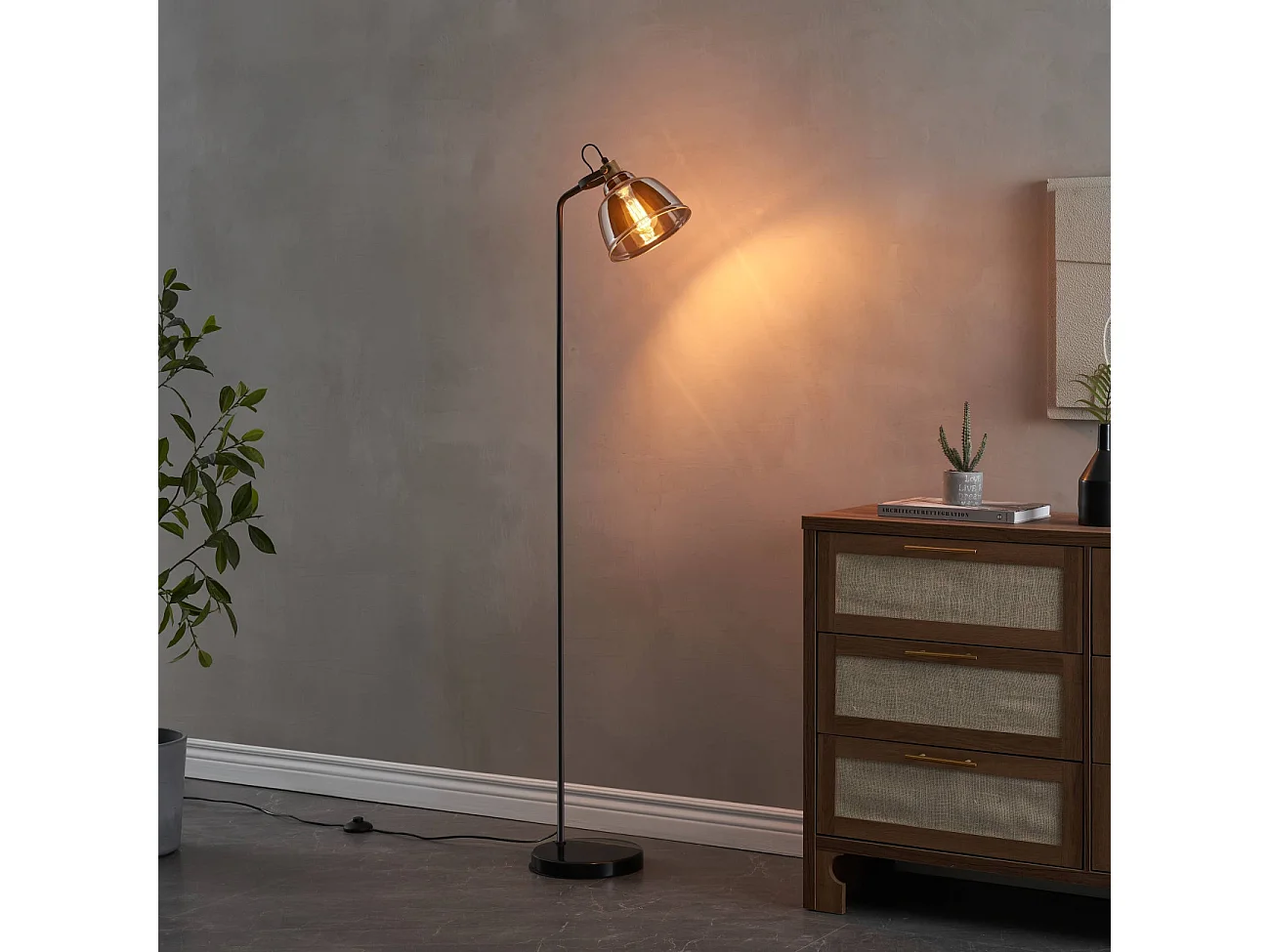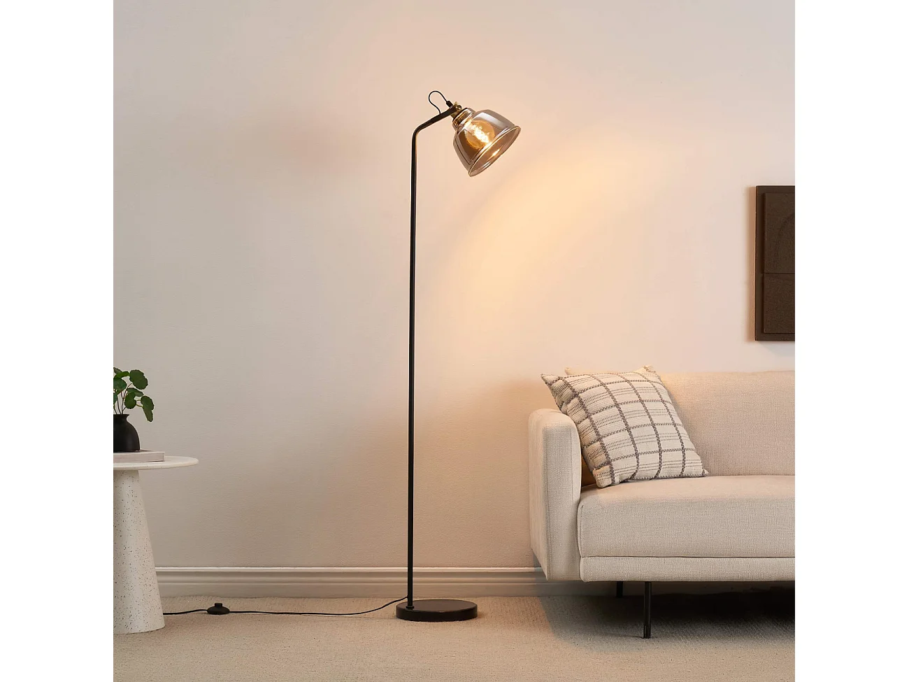 Lampadaire industriel noir verre fumé style atelier vintage - Linz