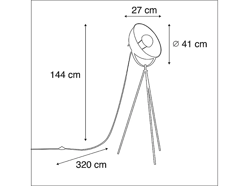 Lampadaire trépied industriel noir - Magna 40 Eglip