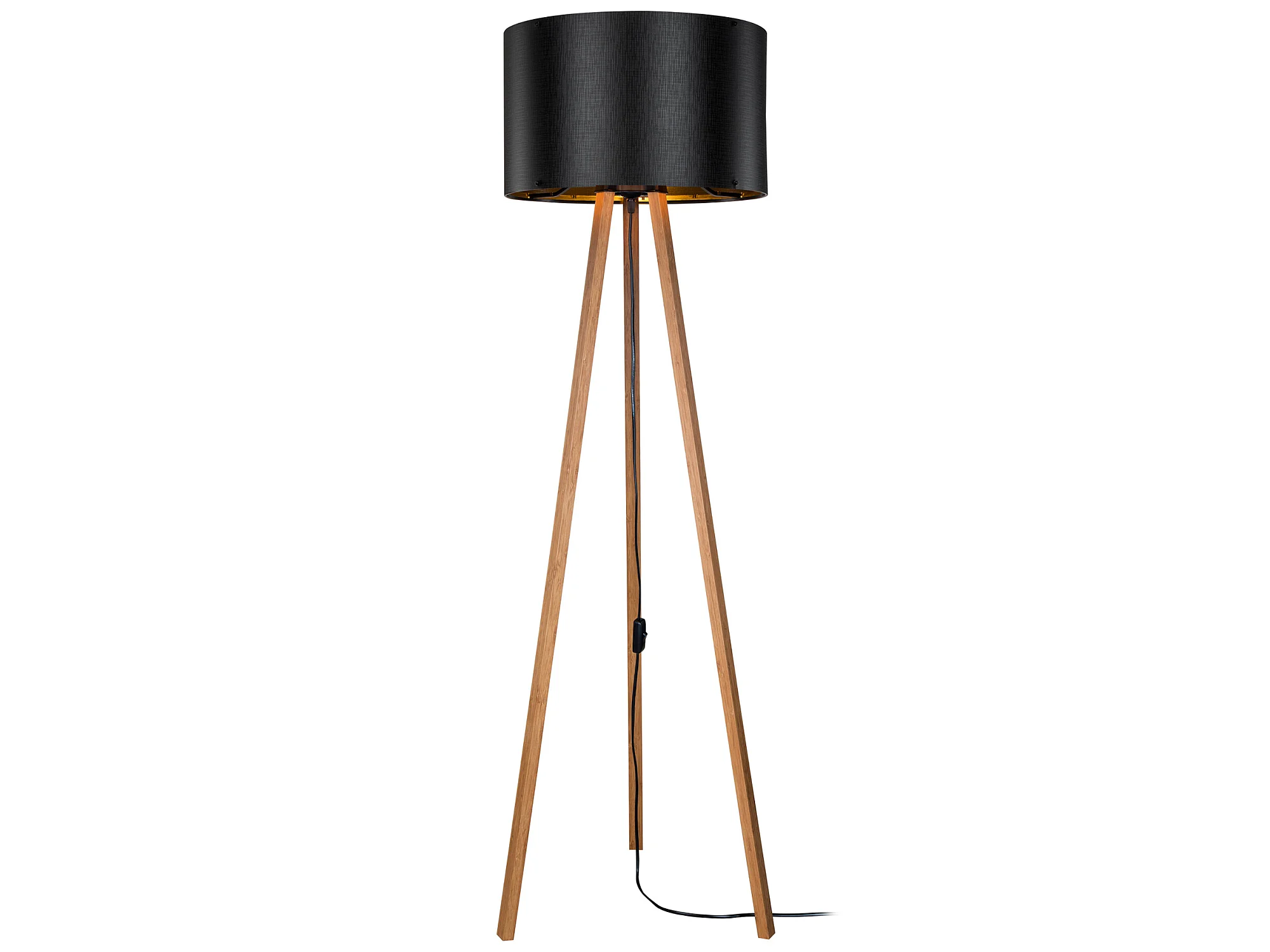 Lampadaire Keynes trépied hauteur 136 cm E27 bambou / noir [lux.pro]