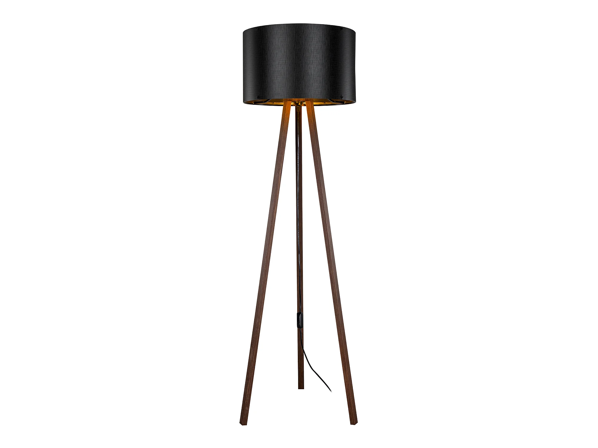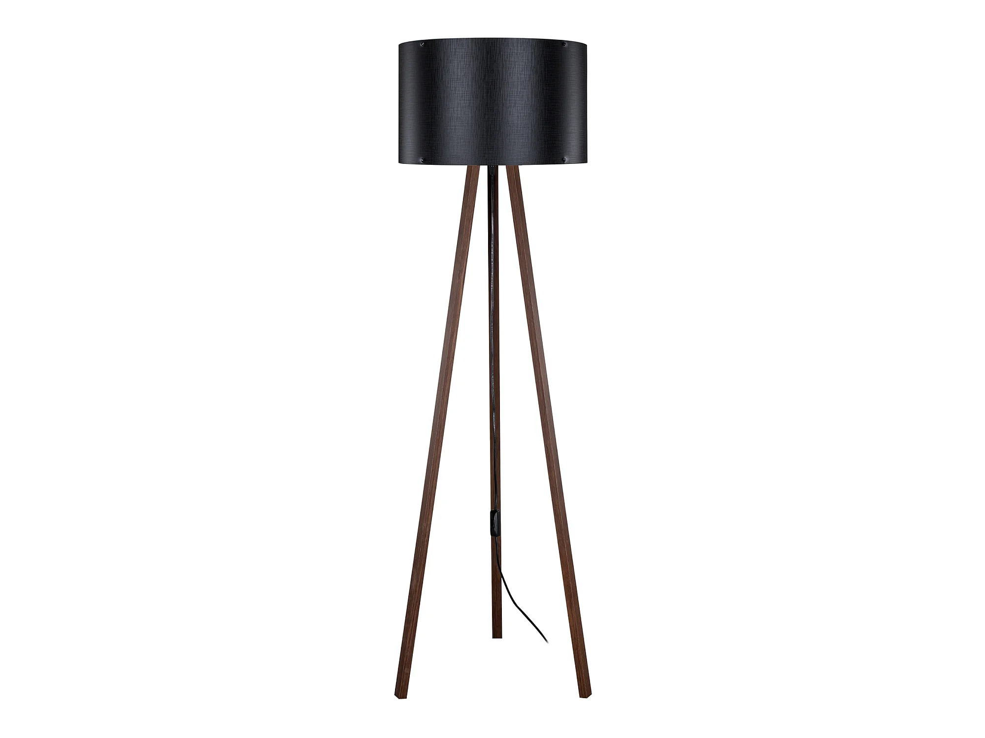 Lampadaire Keynes trépied hauteur 136 cm E27 effet noyer / noir [lux.pro]
