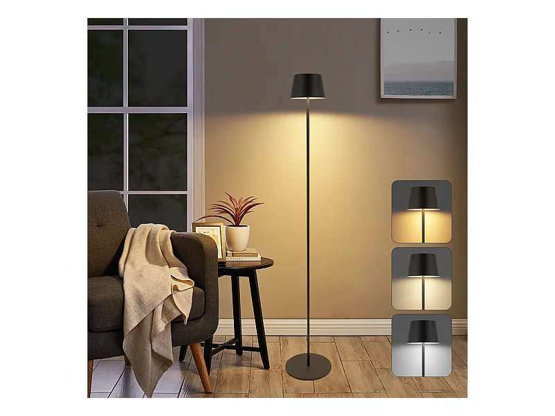 NETTLIFE Lampadaire LED salon dimmable 120cm : lampadaire solaire extérieur avec batterie rechargeable USB-C lampadaire sans fil hauteur réglable