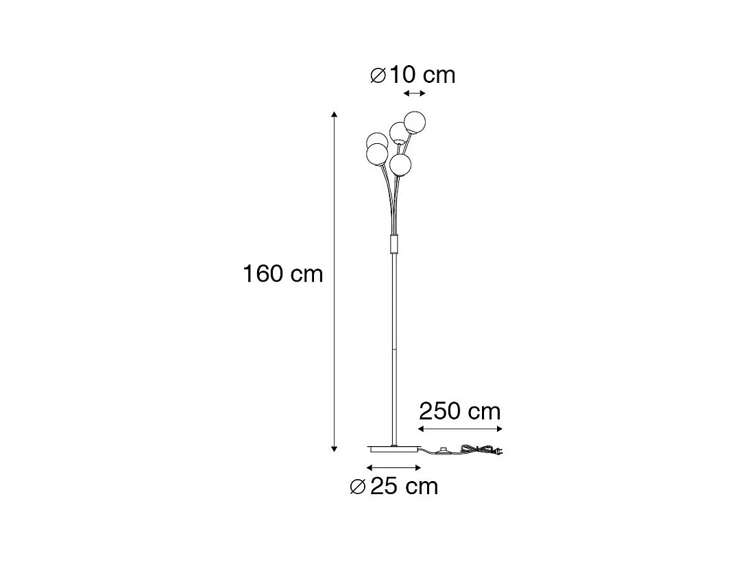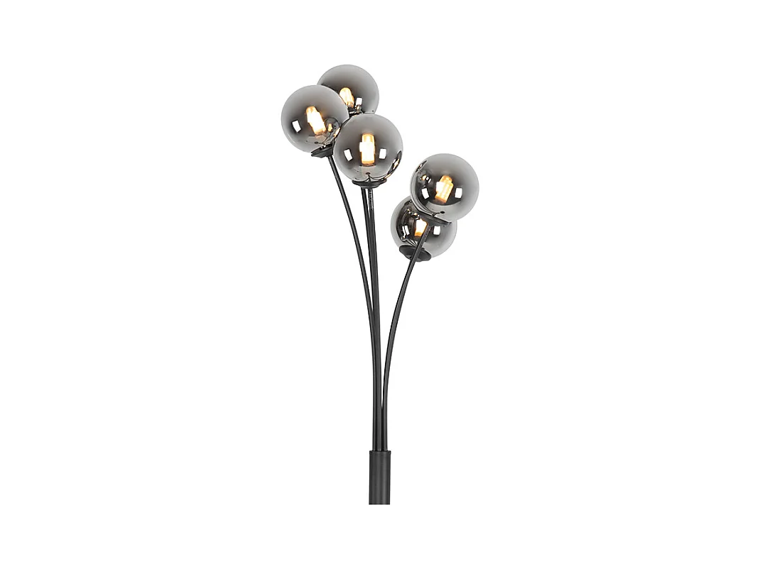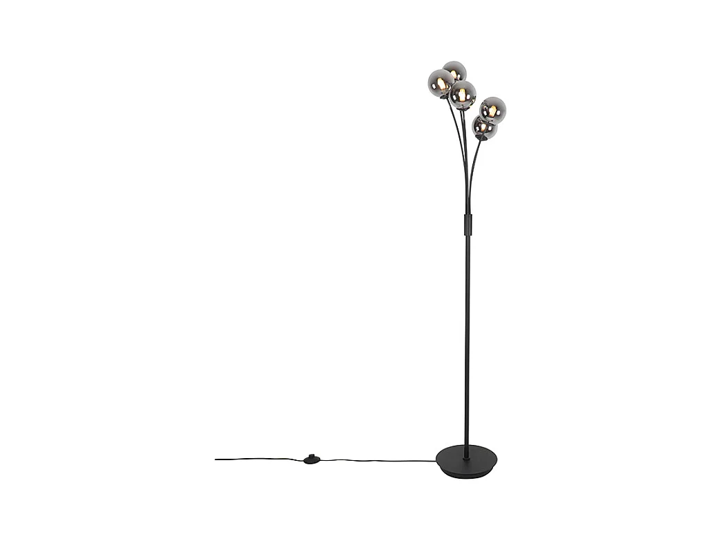 Lampadaire moderne noir 5 lumières avec verre fumé - Athènes