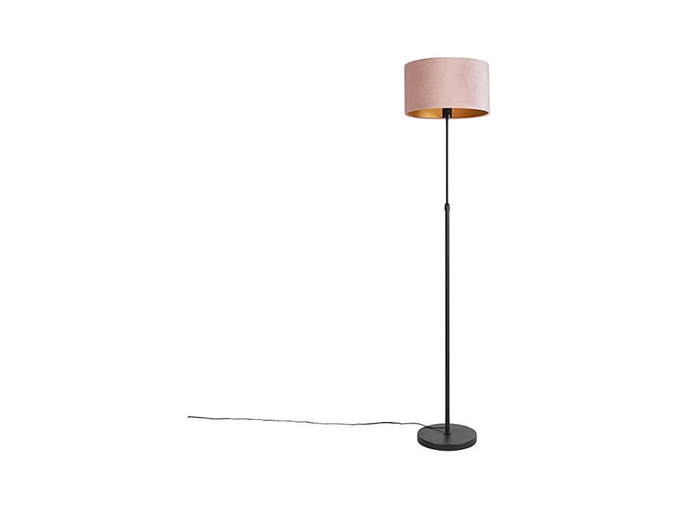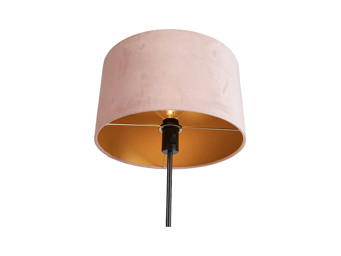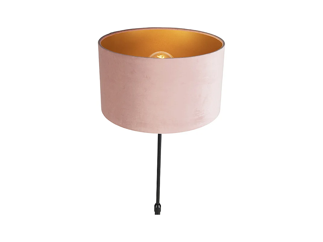 Lampadaire noir avec abat-jour velours rose avec or 35 cm - Parte