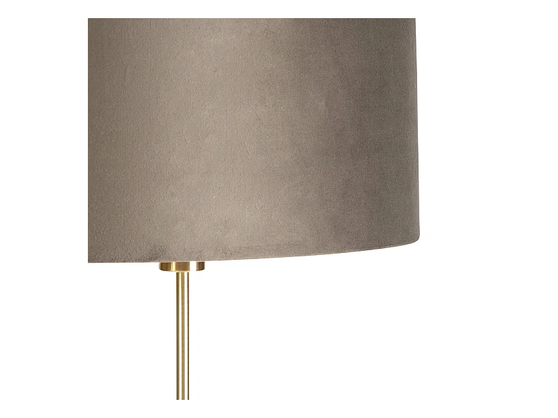 Lampadaire or / laiton avec abat-jour en velours taupe 40/40 cm - Parte