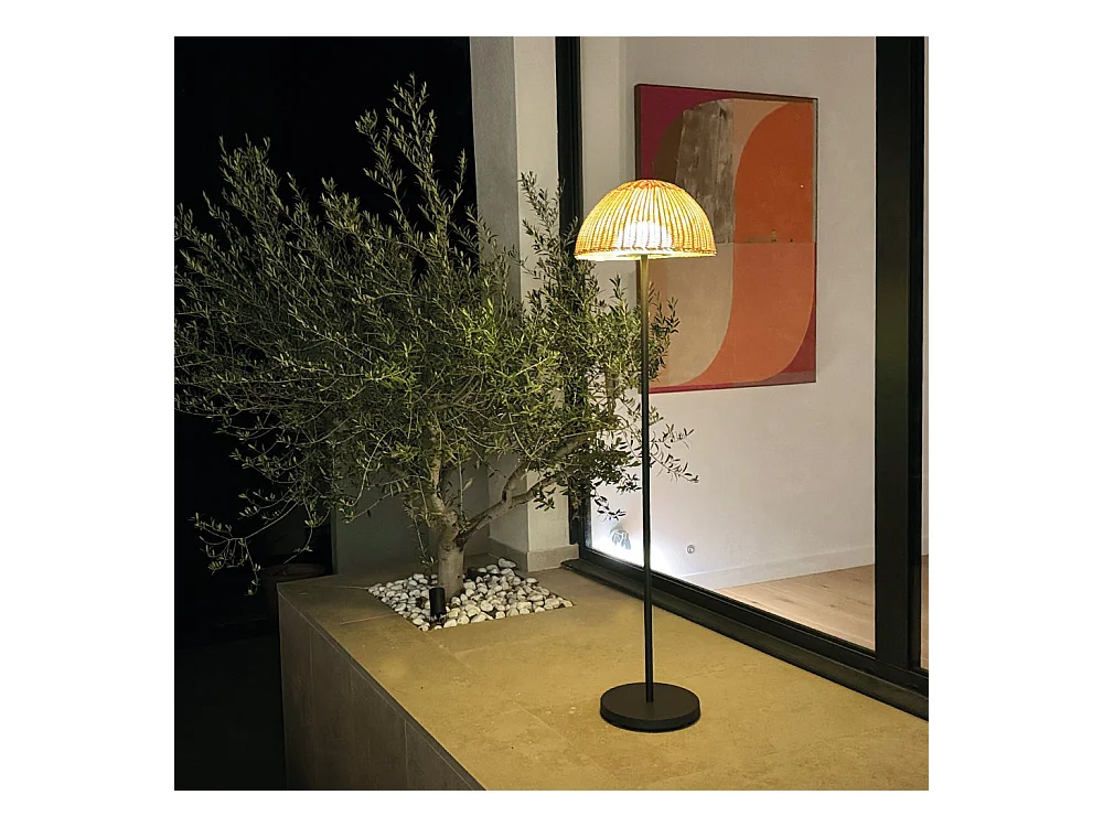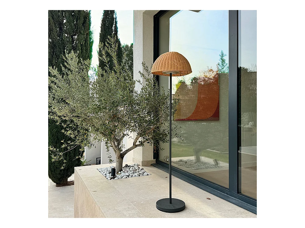 Lampadaire sans fil FAROE Beige Poly rotin H160cm