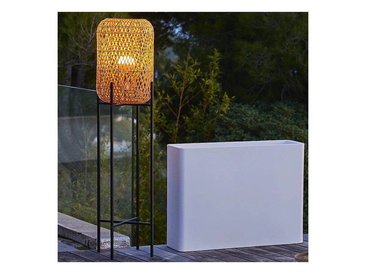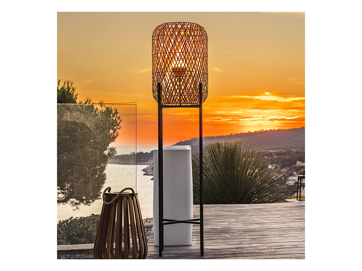 Lampadaire sans fil STANL Beige Poly rotin H150cm