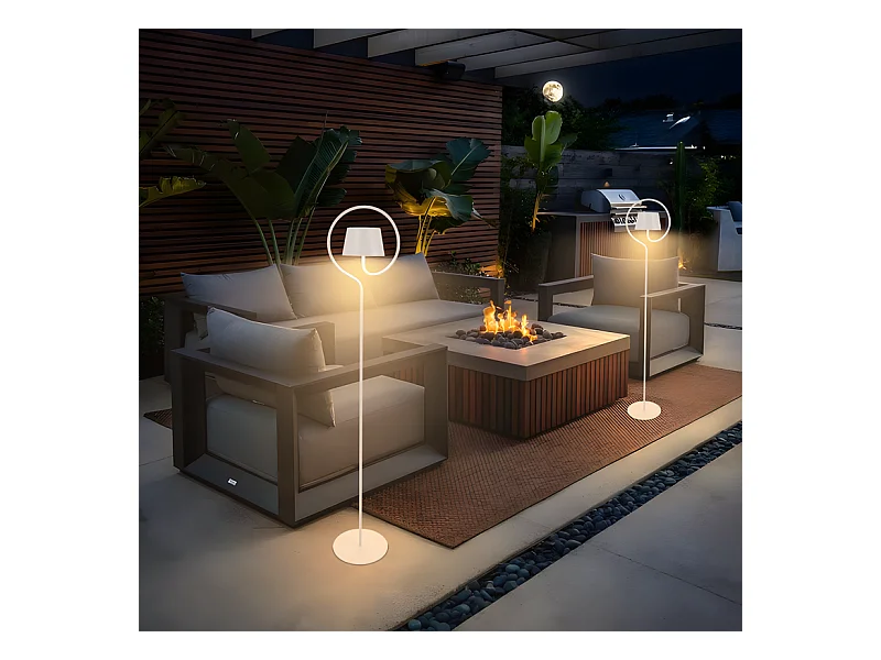Lampadaire solaire d'extérieur NETTLIFE 120 cm à intensité variable : lampadaire LED pour salon avec batterie rechargeable USB-C, blanc, sans fil