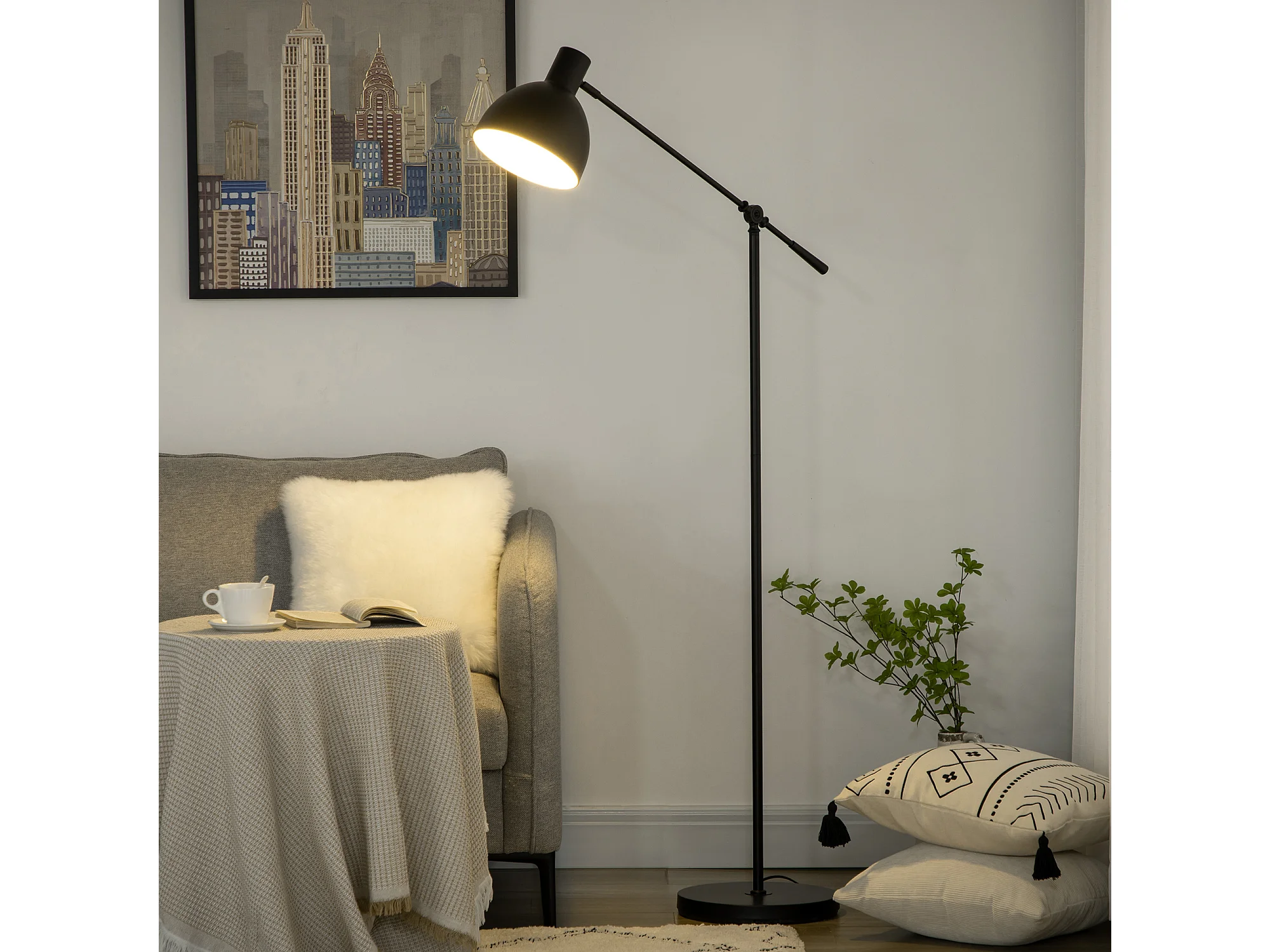 Lampadaire sur pied salon bureau 40W E27 - hauteur réglable, abat-jour et bras orientable - acier noir