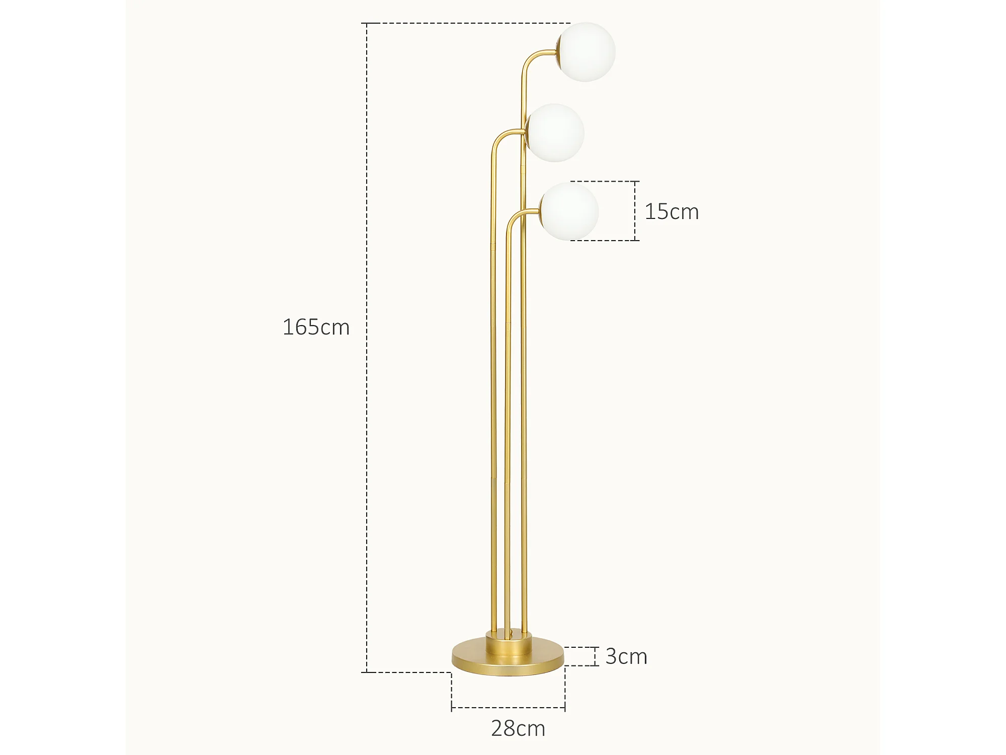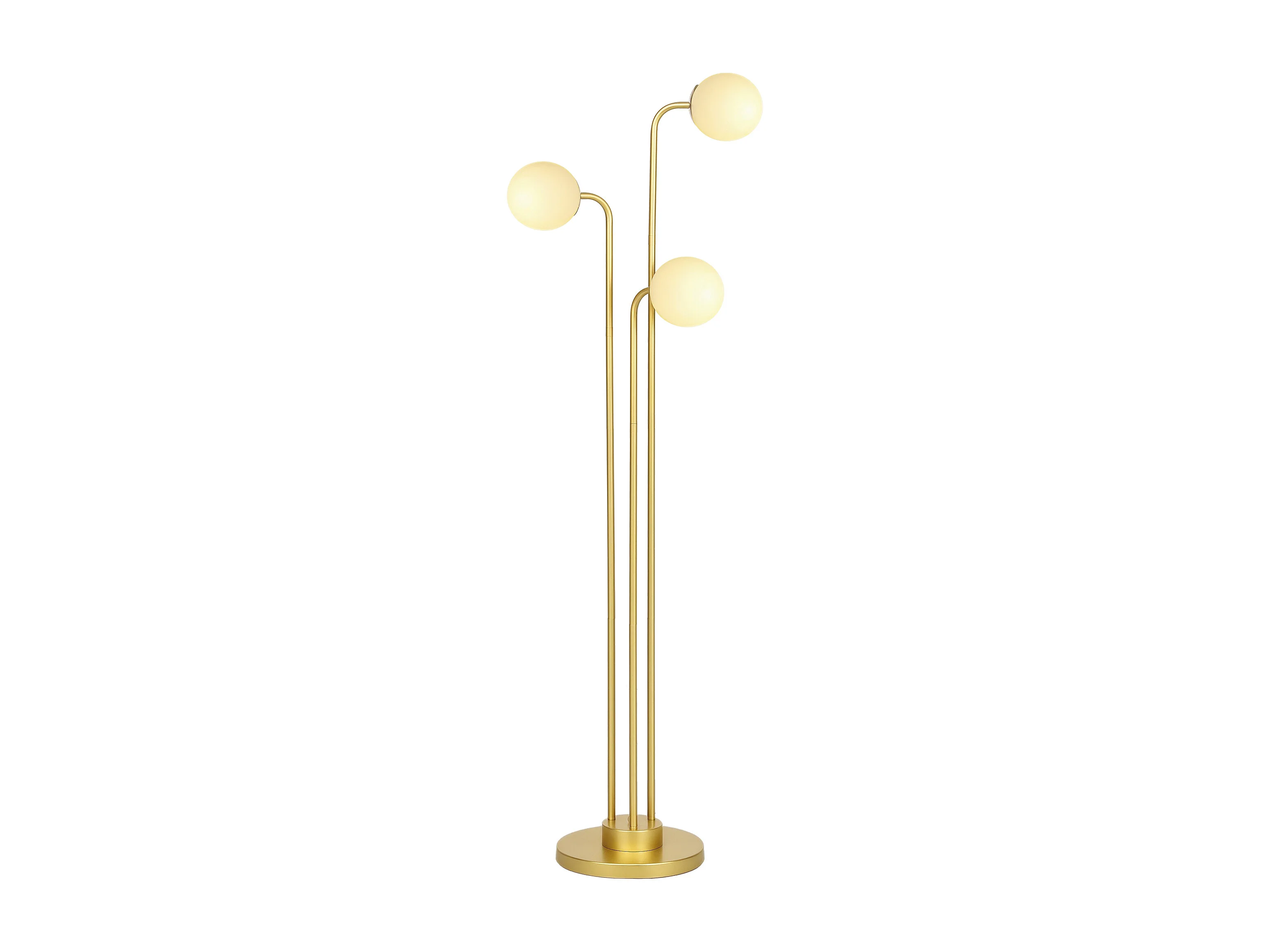 Lampadaire sur pied style contemporain acier doré 3 globes pivotants verre dépoli blanc