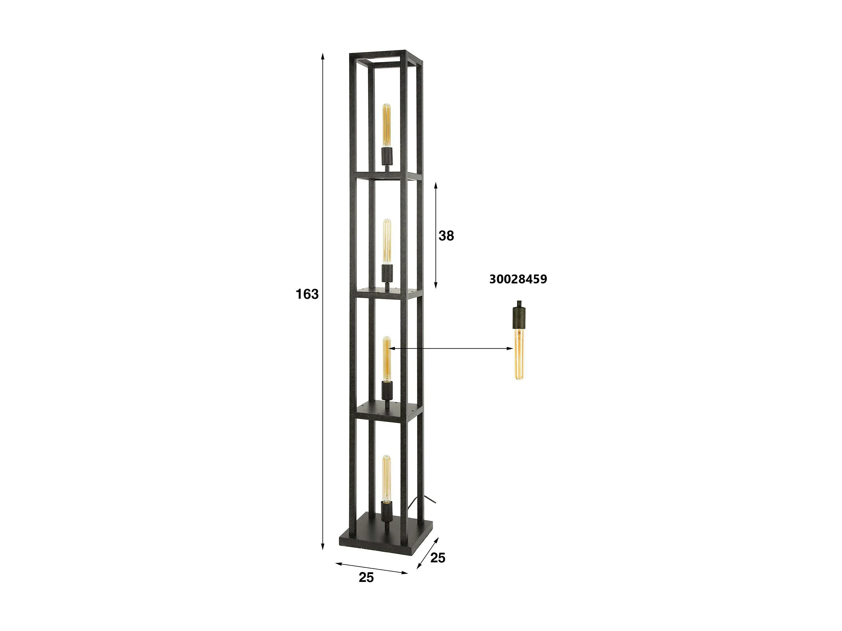 Lampadaire tour noire style moderne, 4 ampoules TRIBECA