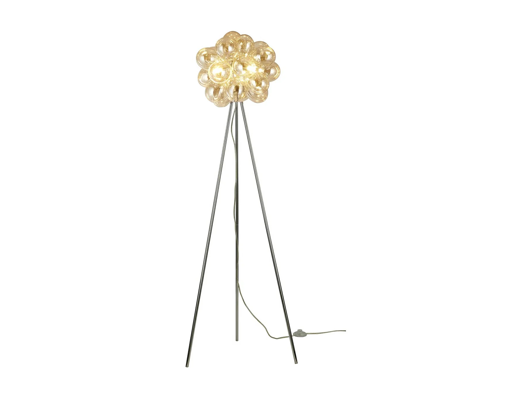 Lampadaire trépied chromé verre ambré ultra décoratif - Bartali