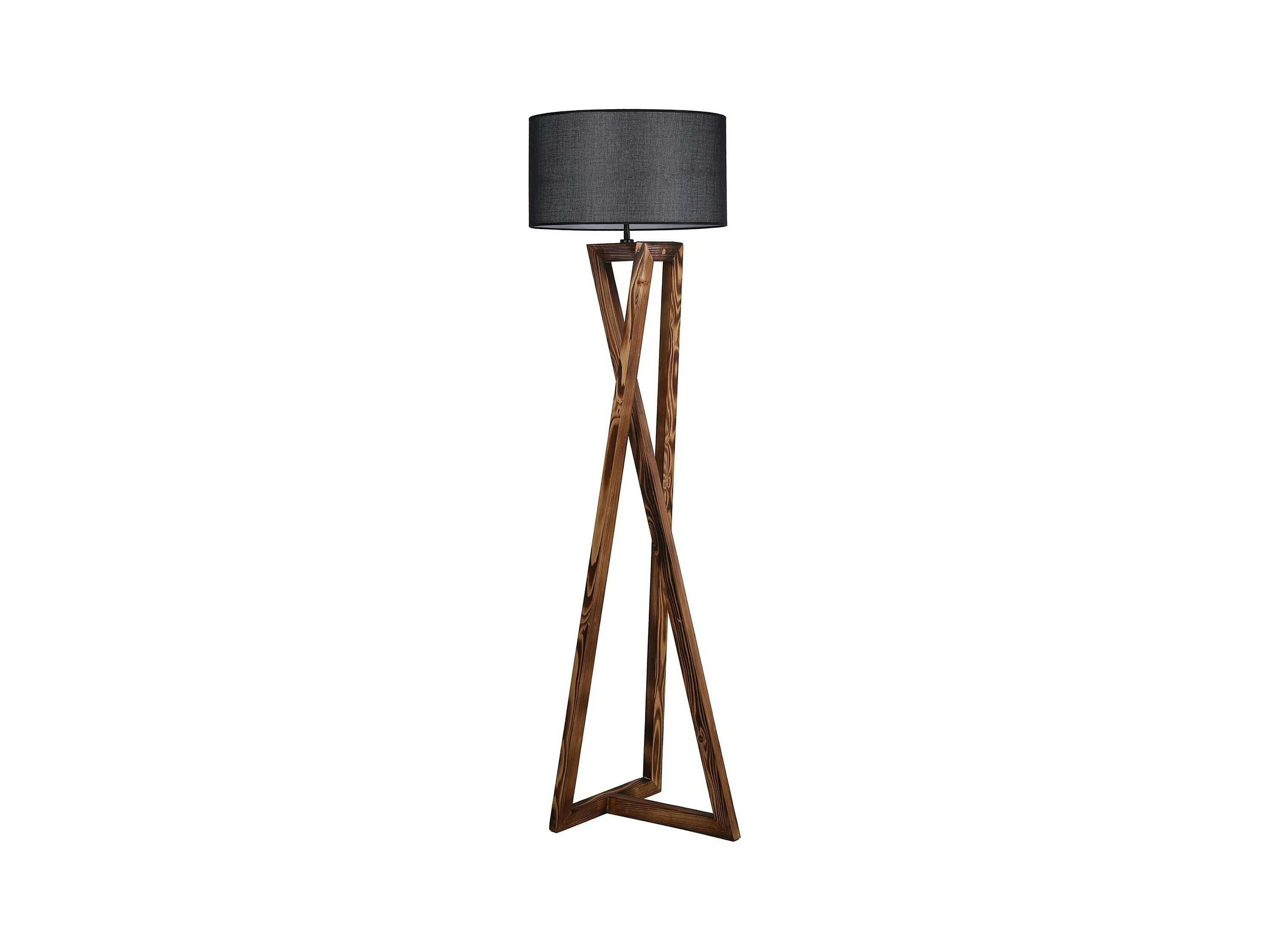 Lampadaire trépied effet bois noyer, abat-jour noir KILIS