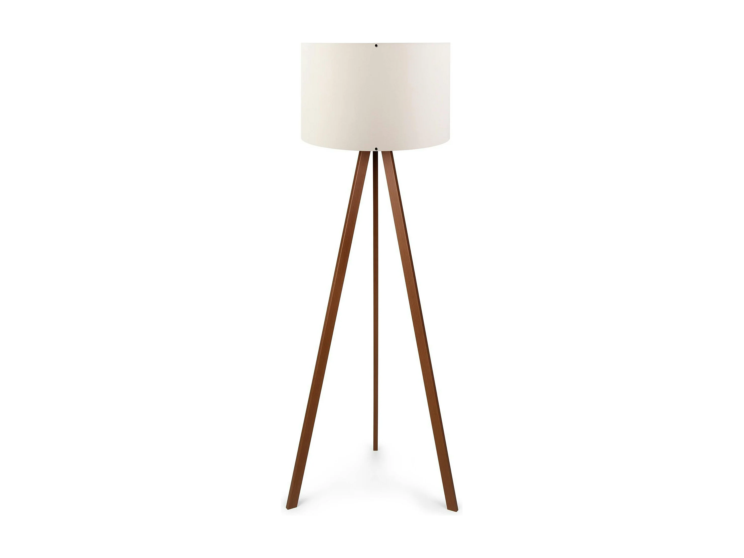 Lampadaire trépied effet bois noyer, abat-jour écru KILIS