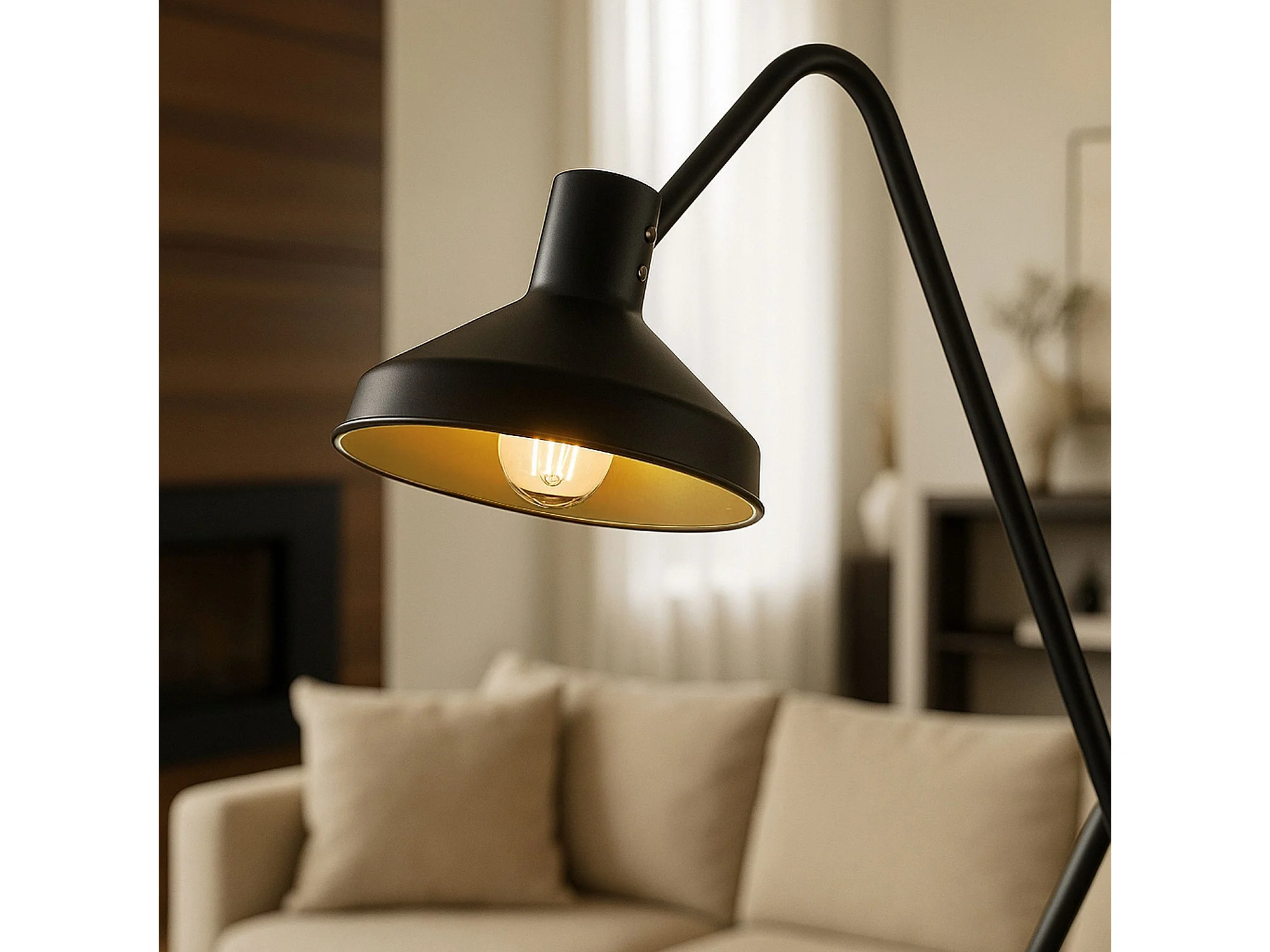 Now's Home - Lampadaire Trepied En Métal Noir Et Doré 41x41xh158cm Snake